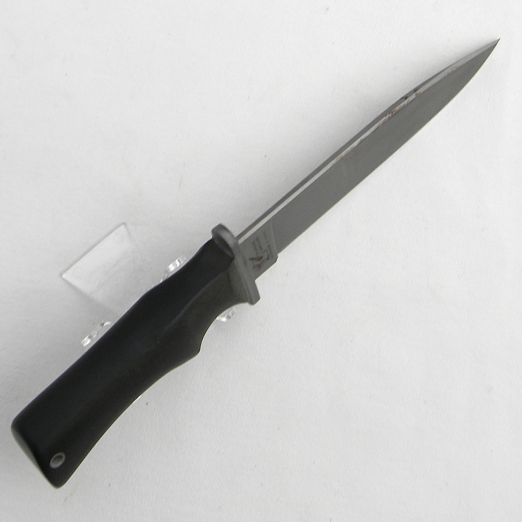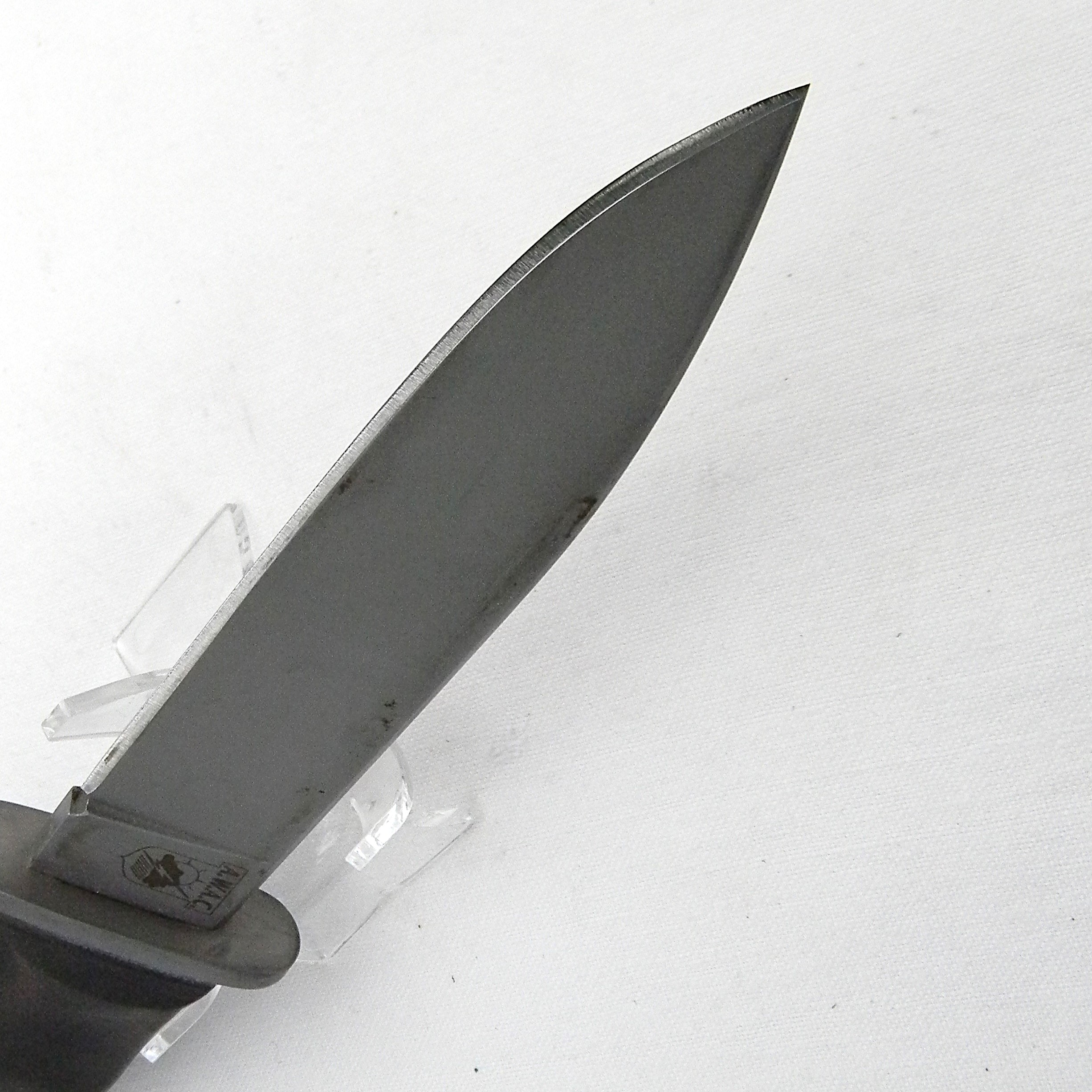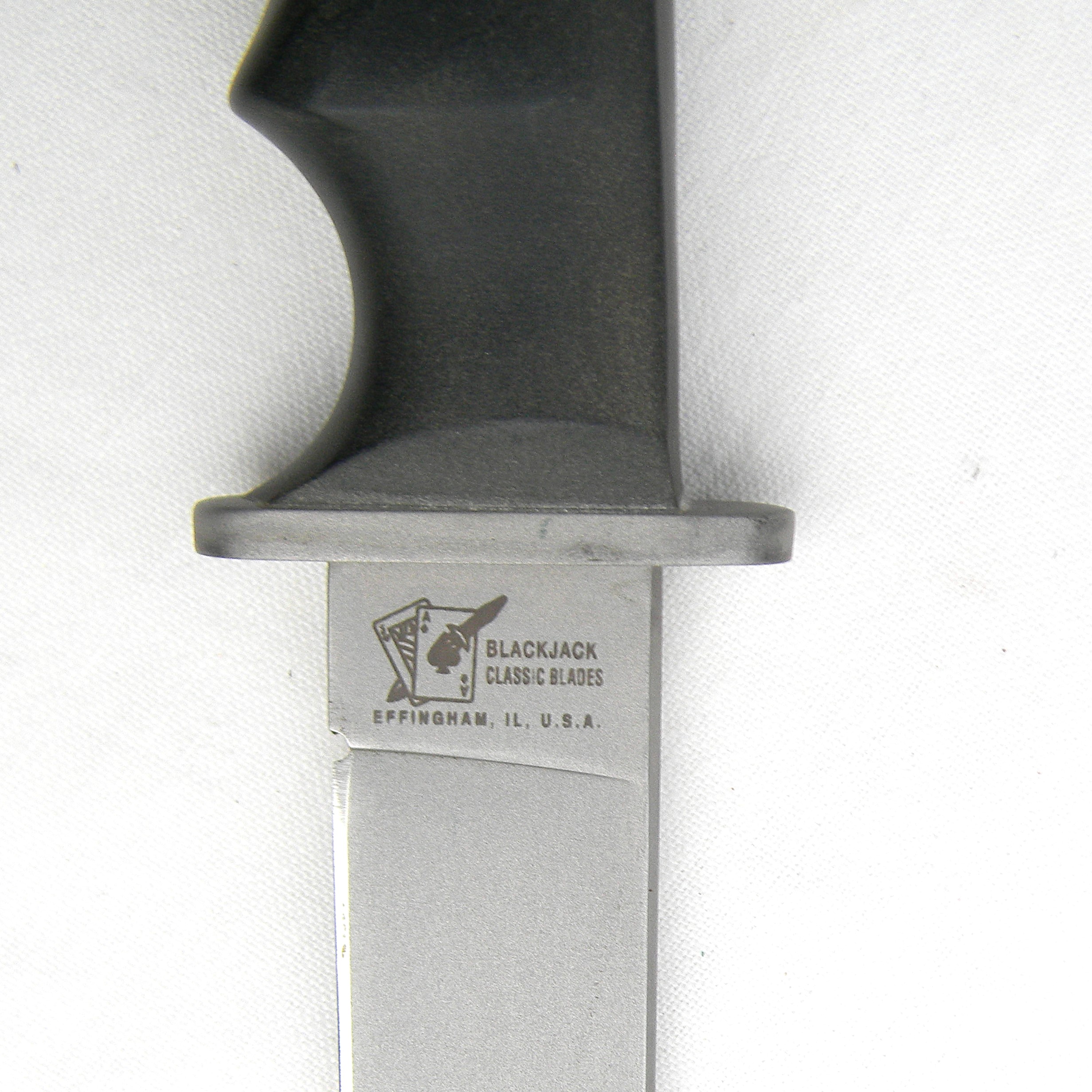 Excellent quality original US-made Blackjack Knives AWAC (All Weather – All Conditions) fighting knife made circa 1995 in Effingham, IL. Blackjack had always made excellent quality products. But their labor intensive production also made it hard to compete with cheap mass-produced Chinese junk 🙁 Blackjack managed to complete only 1000 of these high quality fighters before Blackjack went bankrupt.