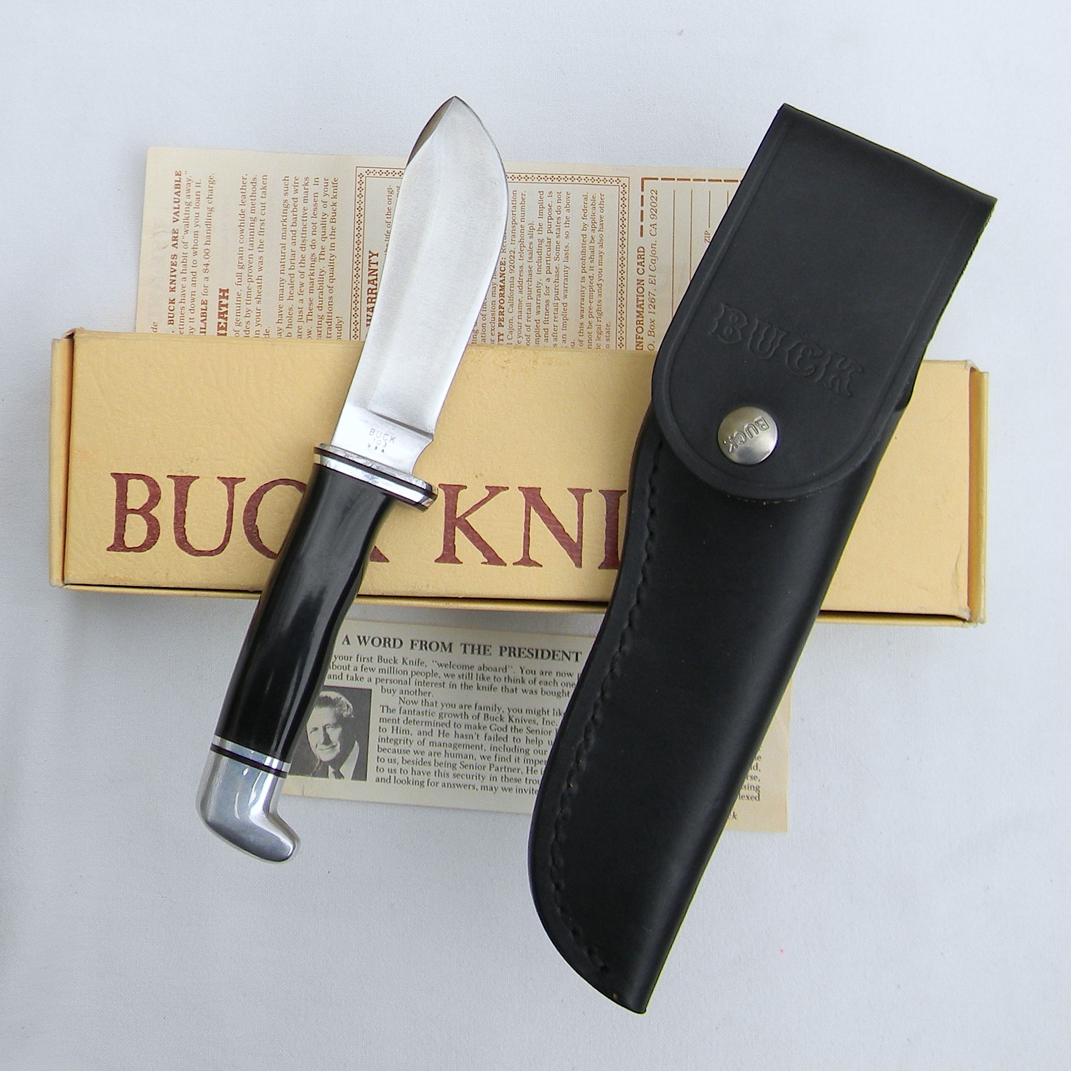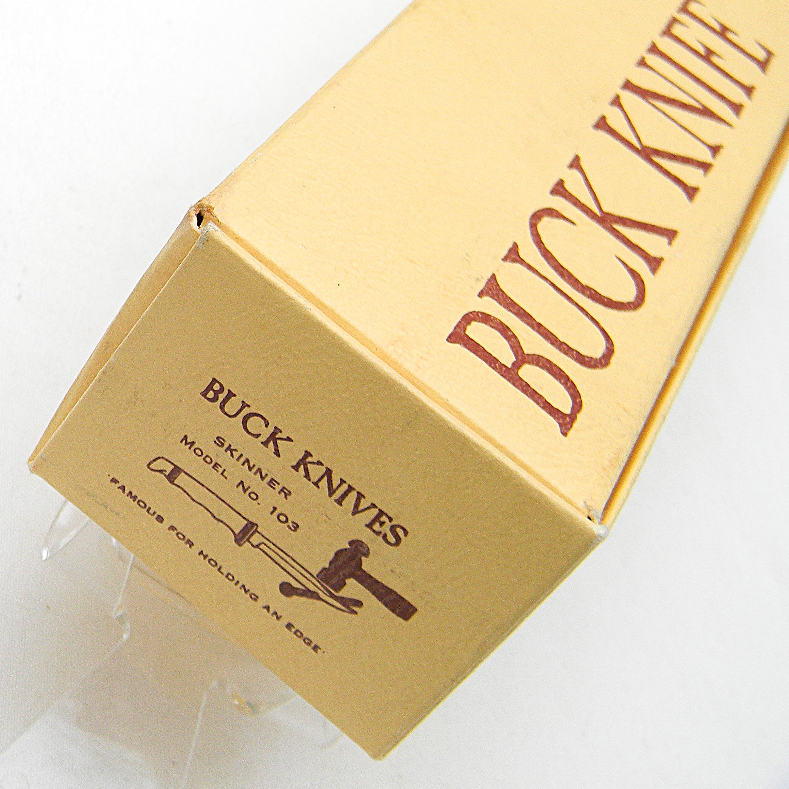 Buck USA model 103 Skinner, original “top-flop” leather sheath. Vintage circa 1972-1985 production in rare UNUSED condition, still in the retail box with papers.