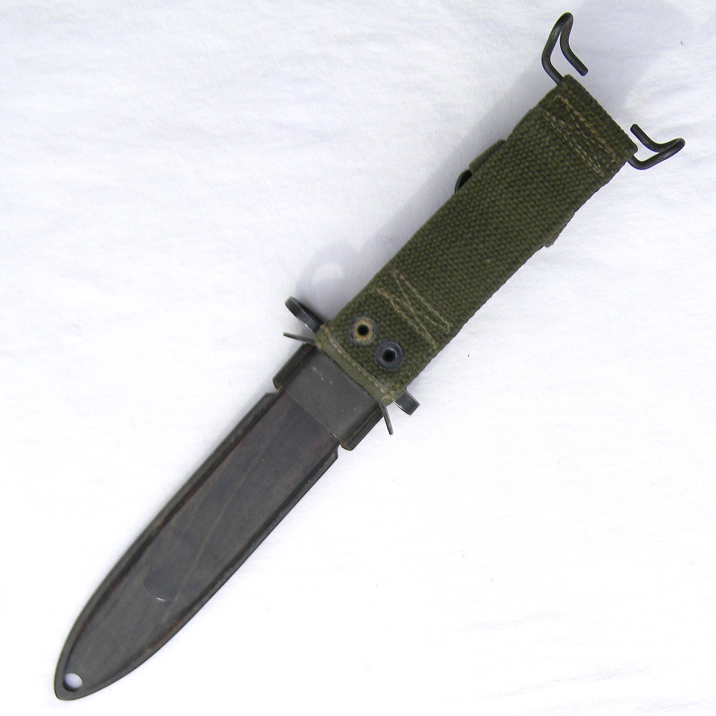 Original Cold War era Dutch Armed Forces M4 bayonet for the US M1 carbine in rare UNUSED condition. This specimen was manufactured for the Dutch military in Germany by the famous E&F Hörster in 1951-1952starting 1970. This is your typical top-tier piece of the famous German engineering: the overall quality is excellent; these scabbards are the best of all M4s ever produced.