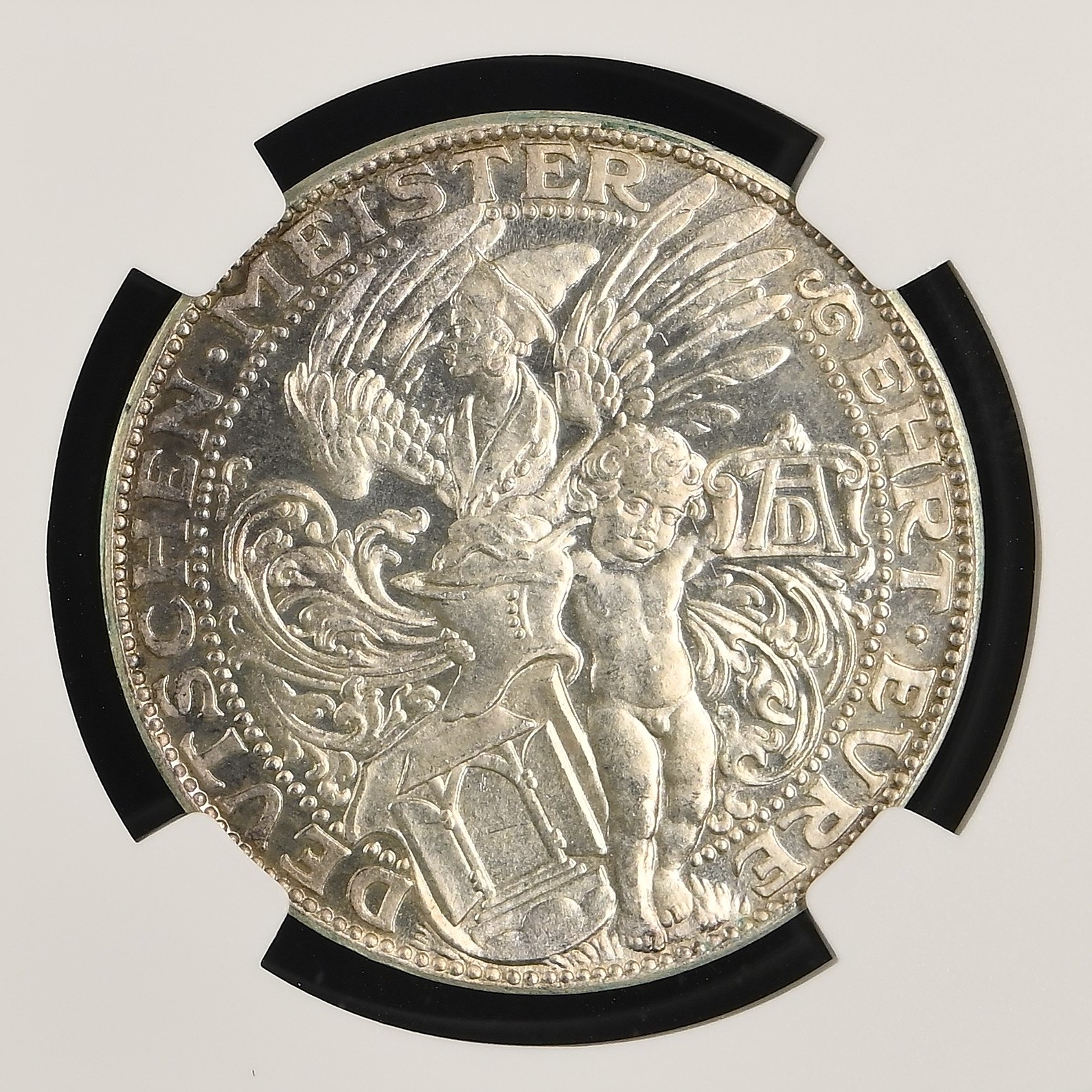 Karl Goetz Germany 1928 Albrecht Durer silver medal (K-388); 36.2 mm diameter; scarce type. Attractively toned specimen; NGC graded MS63 with original patina – rare this nice. FREE SHIPPING WITHIN THE U.S. FOR THIS ITEM.
