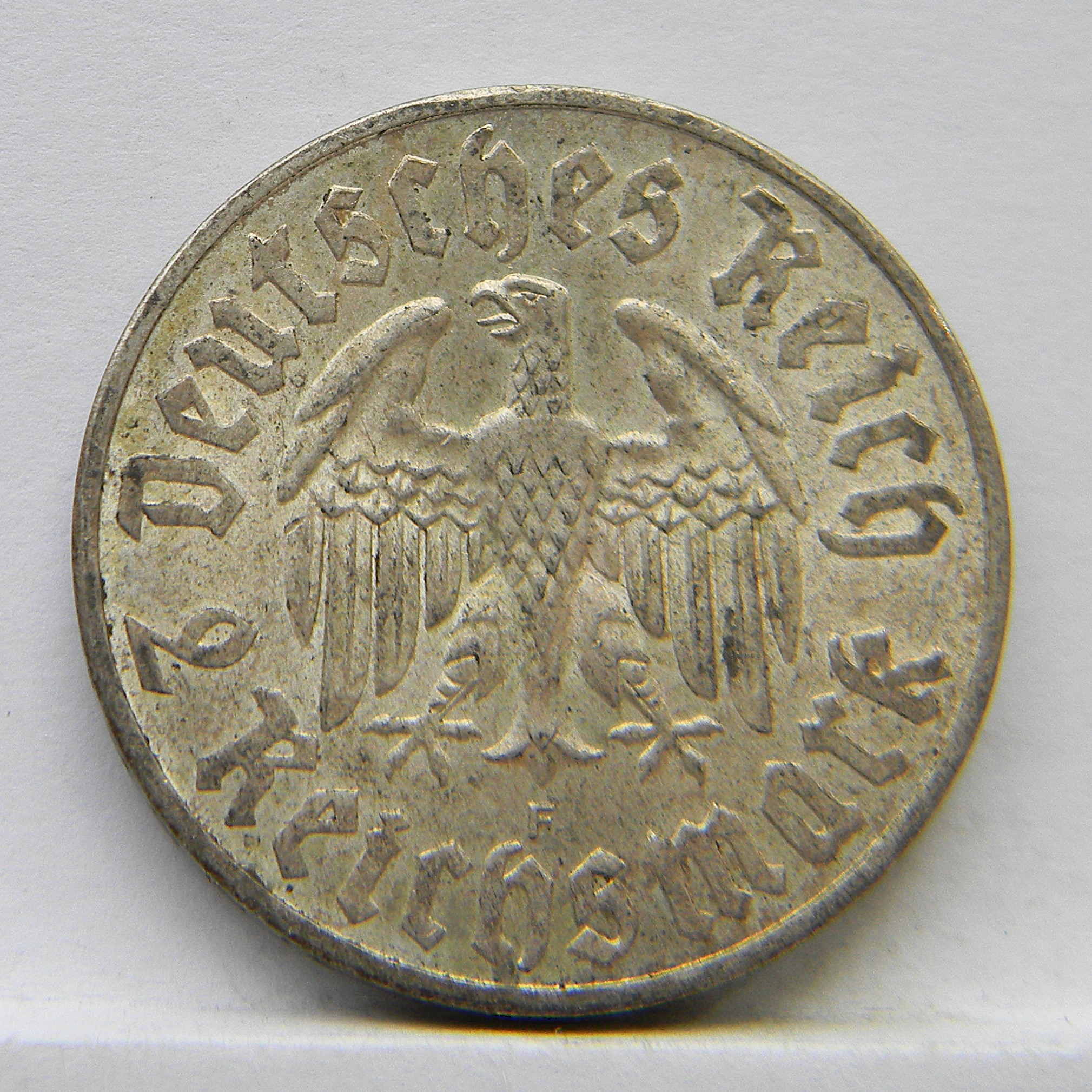 Germany 1933F silver 2 Mark Martin Luther 450th Anniversary 1-year type commemorative issue; Stuttgart mint; nicely toned UNC with original patina. FREE SHIPPING WITHIN THE U.S. FOR THIS ITEM.