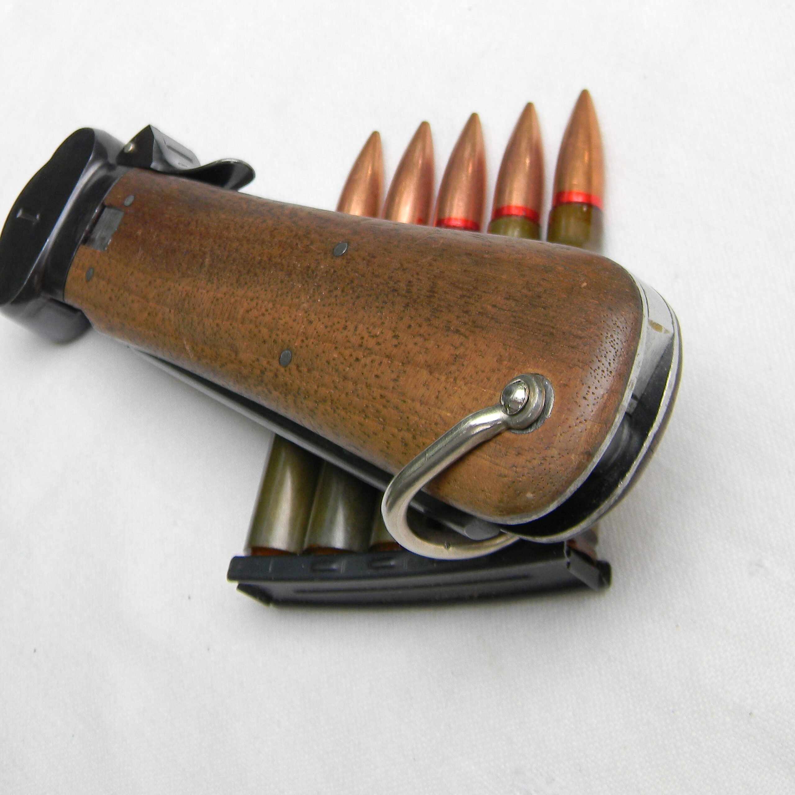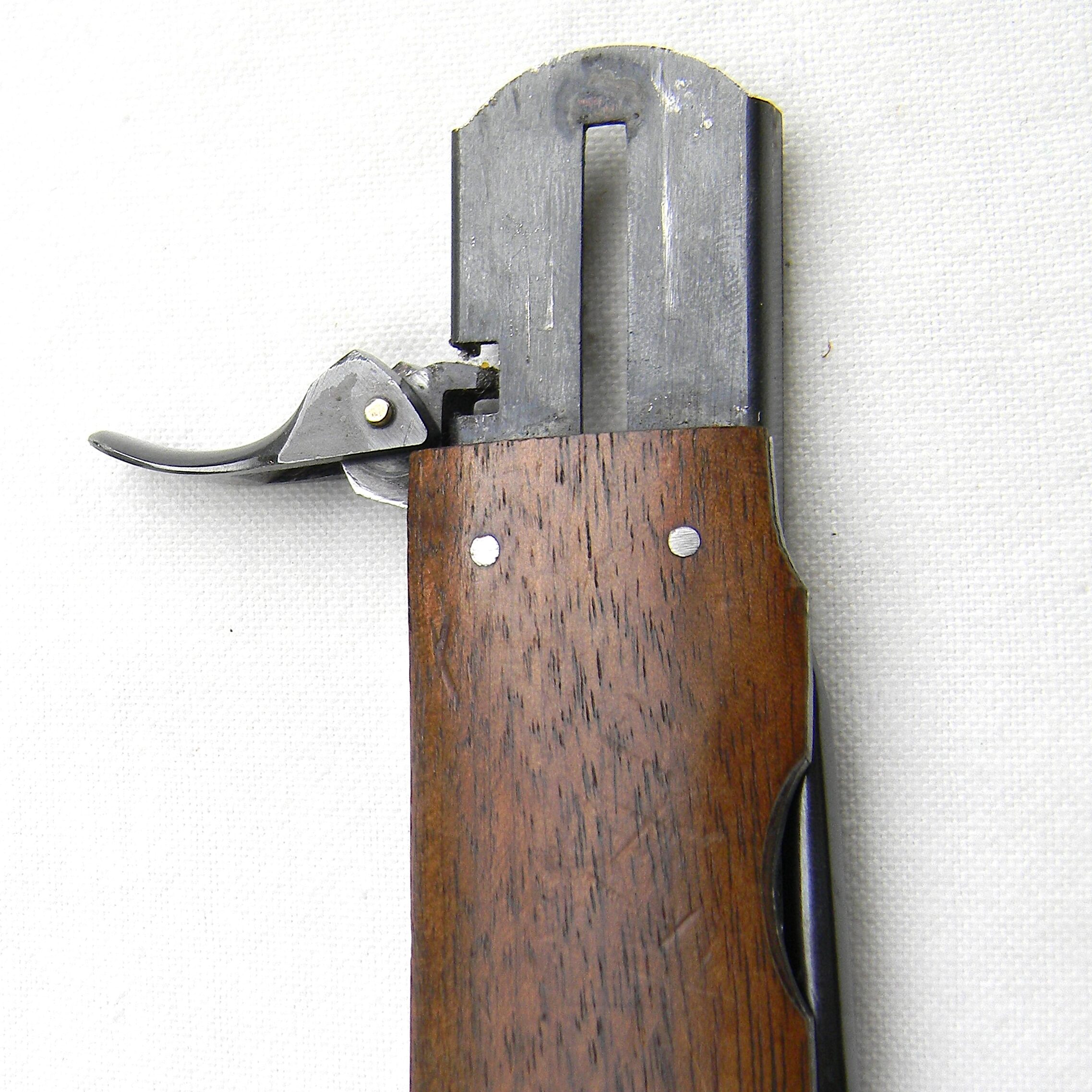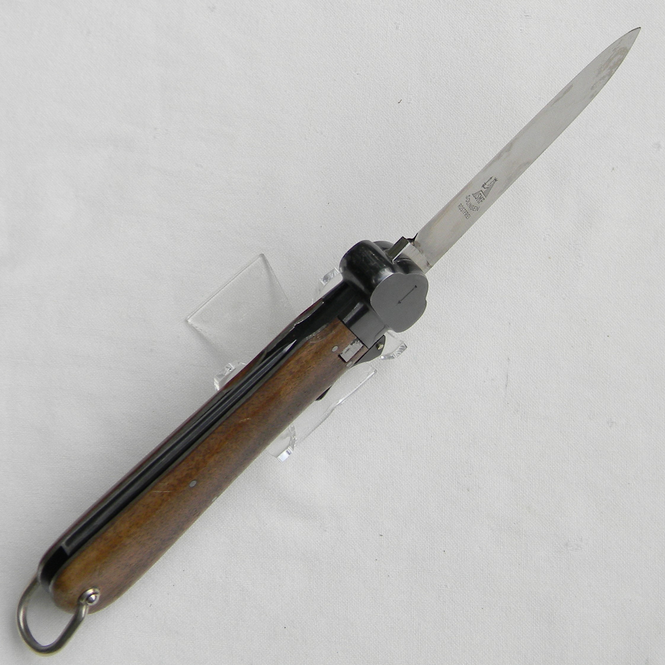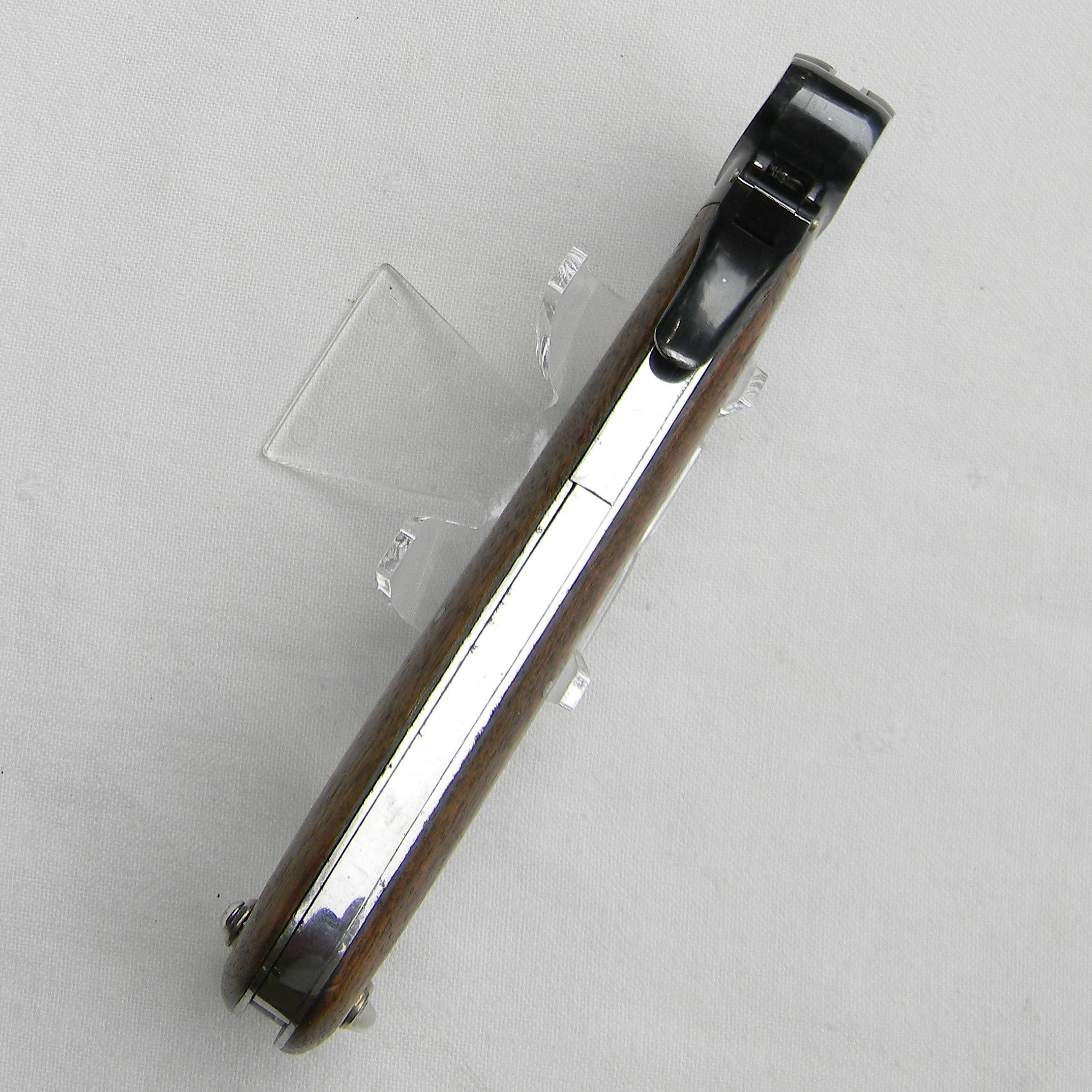 Original hardwood handle scales with 4 steel pins and the D-ring shackle on the pommel. Wood handle scales are in great overall condition, considering the age – no cracks or chips; just a couple of light contact marks. All springs are nice and tight; the spike holds well, all original parts are intact – this rare Cold War era Germany SMF Model 2 paratrooper knife is rare this nice. Today most of the surviving German Fallschirmjäger-Messer paratrooper knives are in private collections & rarely come up for sale; don’t miss your chance to add this rare post-WW2 transitional Germany SMF Model 2 paratrooper knife to your collection! Please check out our Collectable Blades and Militaria sections for a variety of custom-made and various WW1 and WW2 combat knives.