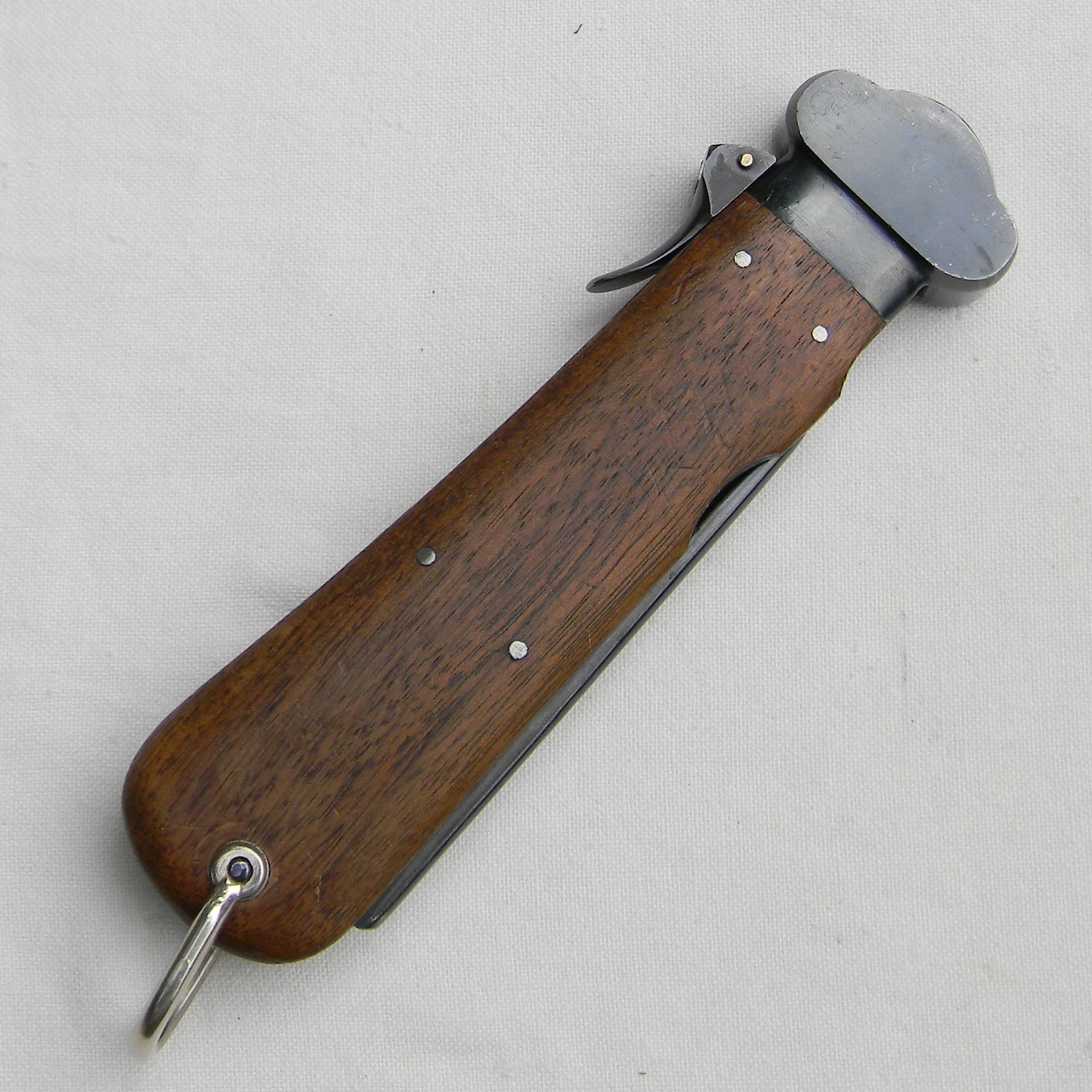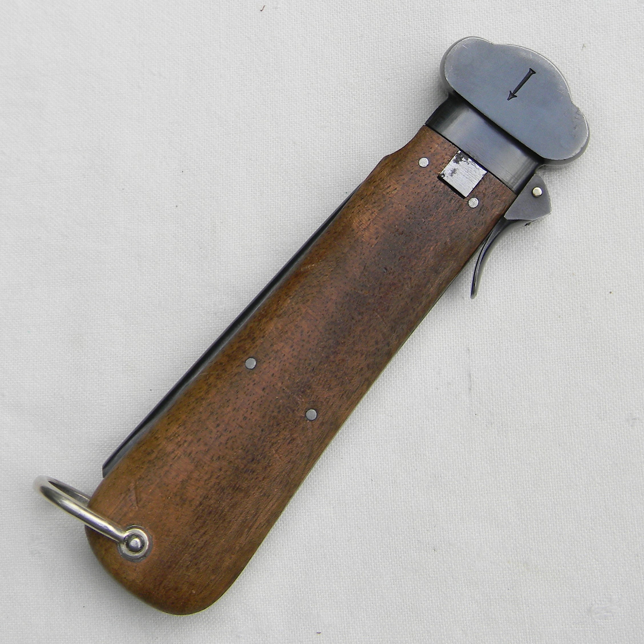 Developed in 1937, this type was originally issued to the German paratroopers as an emergency-assist knife which could be operated one-handed to cut entangled parachute cords, cut lines, untie paracords with the “marlin spike”, etc. Later in the war this type was issued to all Luftwaffe aircrews (WW2 German Airforce). A relatively small number of 350,000 Fallschirmjäger-Messer knives were produced in total by six different manufacturers; very few survived the war in decent condition. The knife was large enough, practical and reliable in the field; it was well-received by the airborne troops and it became a subject of envy to all the rest of the men in uniform.
