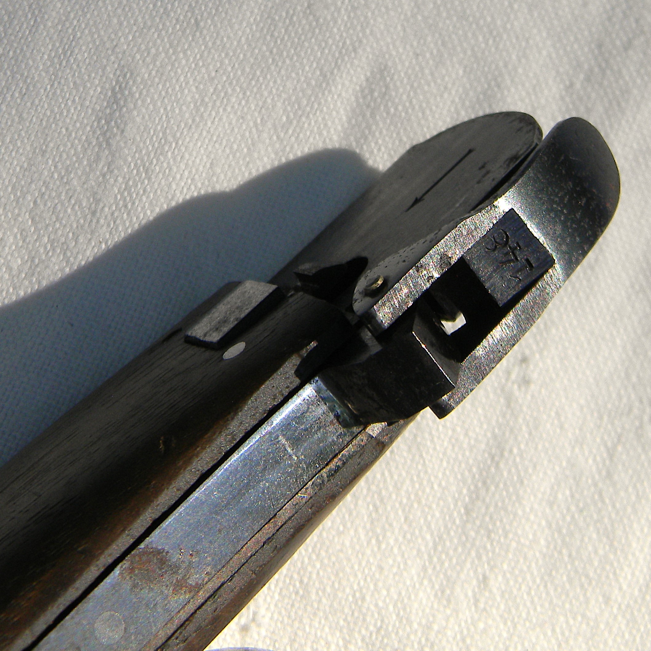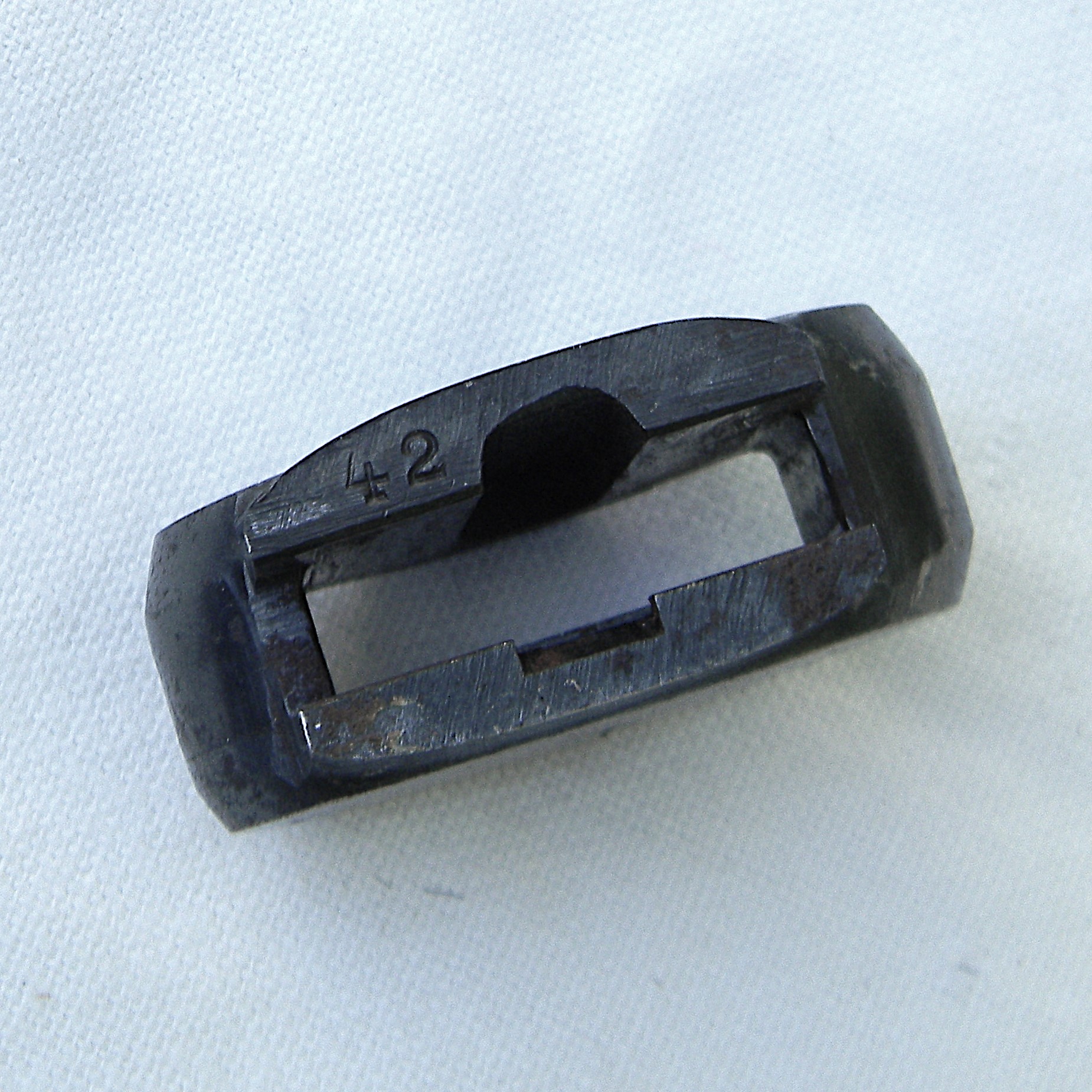 This is a scarce late-war SMF Model 2 specimen with all high-carbon steel (non-stainless) metal parts. This rare transitional model specimen has the logo-etched, non-blued, “white finish” blade, but it is no longer marked ROSTFREI. These transitional blades were made for a very short period and are extremely hard-to-find. But by mid-war stainless steel was becoming scarce in Germany and most of the “non-essential” wartime production had to switch to “regular” high-carbon steel. Still, it wasn’t until late in the war when SMF had finally ran out of various stainless steel parts and had switched to all-carbon steel production. Soon thereafter the Allies had bombed the Solingen factories to smithereens, effectively ending all manufacturing until the war’s end. The late-war “all-carbon steel” production Fallschirmjäger-Messers are hard to find because there weren’t many of them manufactured in the first place.  This knife is about 6-1/8″ / 15.5 cm closed; 10-1/4 / 26 cm fully opened; the blade is about 4″ / 10.2 cm long. All metal parts except for the blade are blued with about 80 to 90% of the original bluing remaining. The blade has been very gently sharpened; it is very sharp still; the tip is intact. The blade does not comes out of the handle easy and needs to be pulled out – the tolerances in the late-war production were not as tight as in the early, high-quality models. Heavy-duty unmarked marlin spike is about 3-5/8” / 9.3 cm. The bolster, blade and the frame are are correctly stamped with matching production series numbers – see photos.