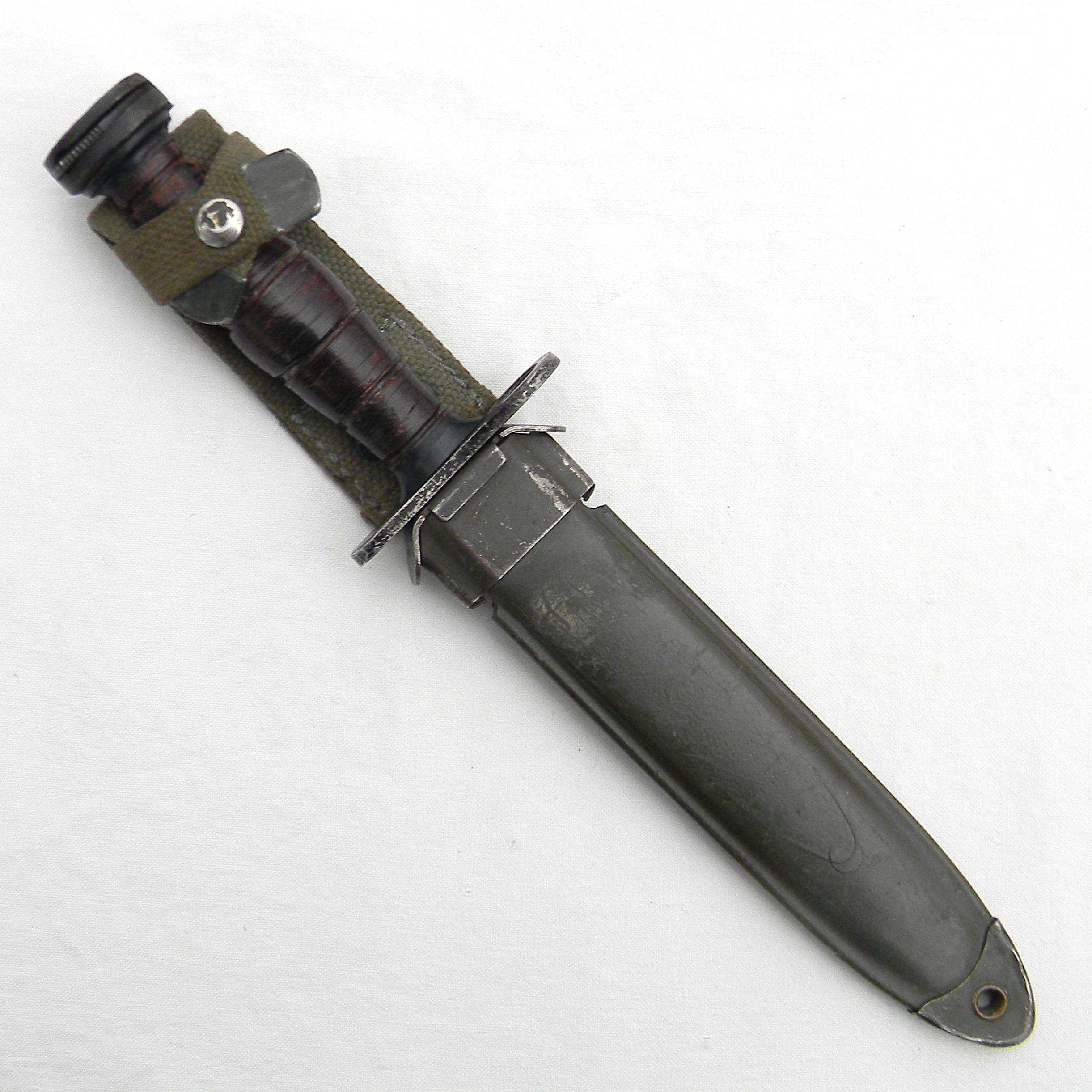 Cold War era Greece M4 bayonet for M1 carbine, only 38,264 were made in the 1950s; rare original Greek-made M8A1 style composition scabbard included; excellent overall condition. FREE USPS PRIORITY MAIL SHIPPING WITHIN THE U.S. FOR THIS ITEM