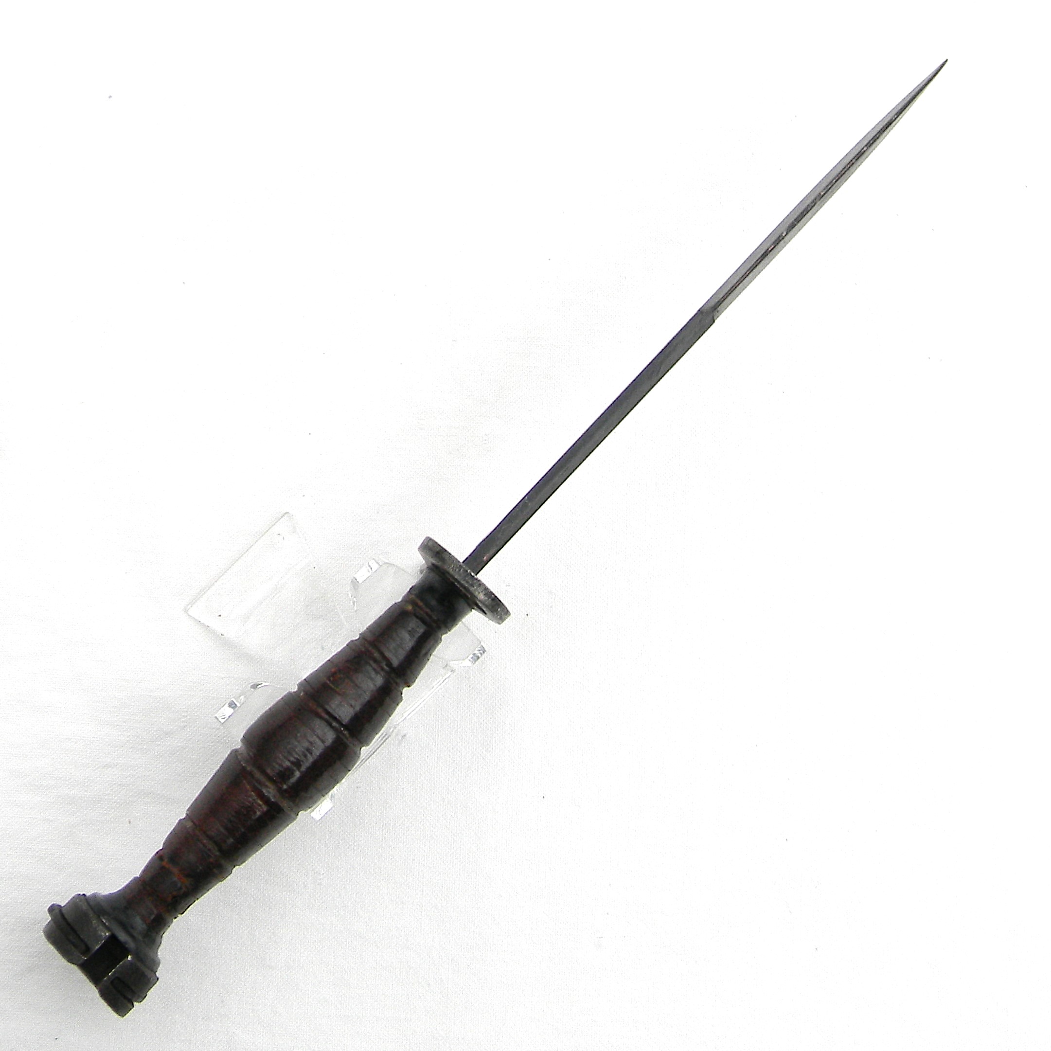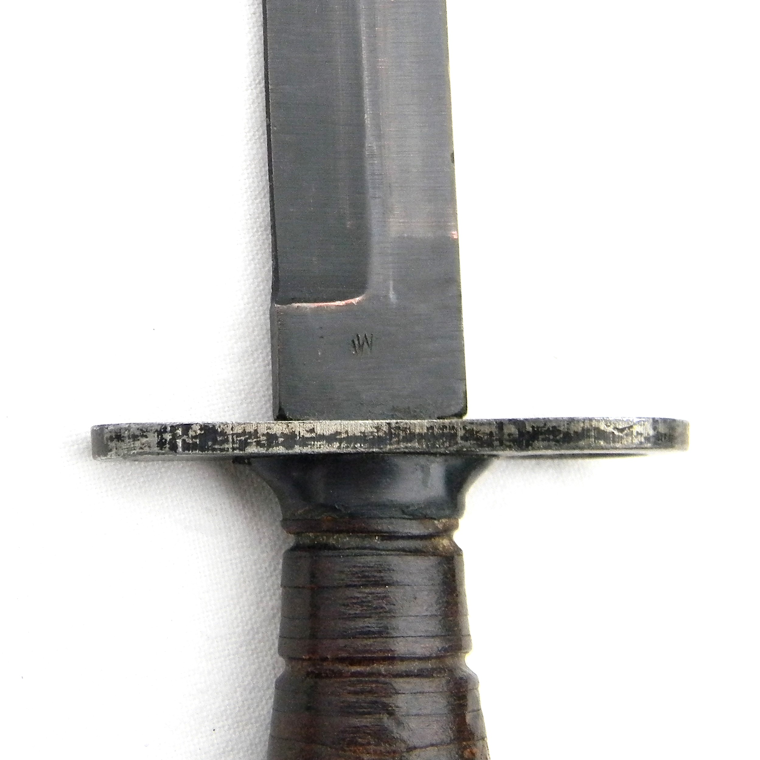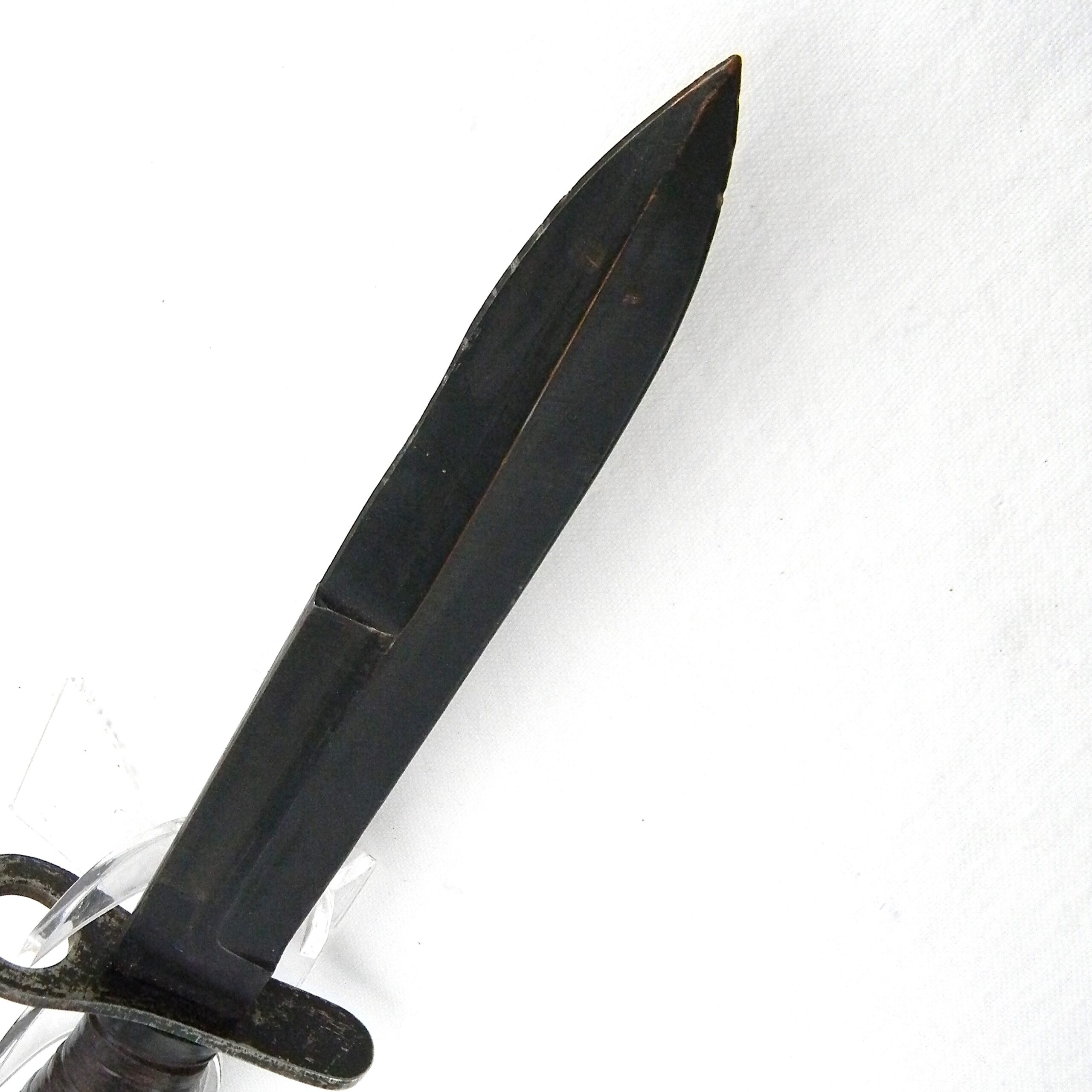 This original Cold War era Greece M4 bayonet is in excellent overall condition; it is 100% serviceable still. Not cleaned or tampered with in any way; these are the actual photos. I have a few more European fighting knives and bayonets, as well as several scarce WW1 and WW2 American and European fighting daggers, bayonets and trench knives available for sale – please take a look in our Militaria section.