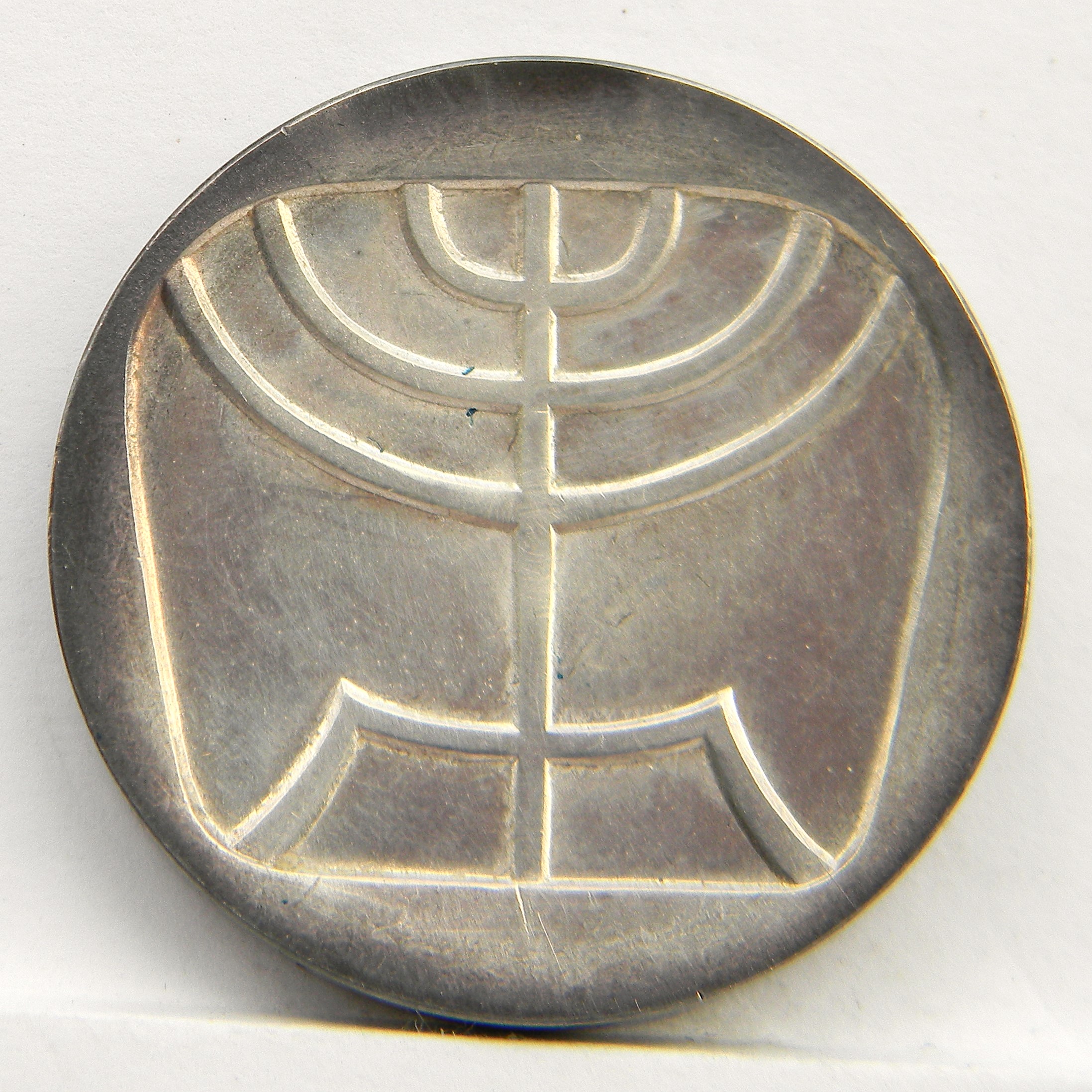 Israel 1958 silver 5 Lirot, 10th Independence 1-year type commemorative, 25 grams; toned UNCIRCULATED. FREE SHIPPING WITHIN THE U.S. FOR THIS ITEM.
