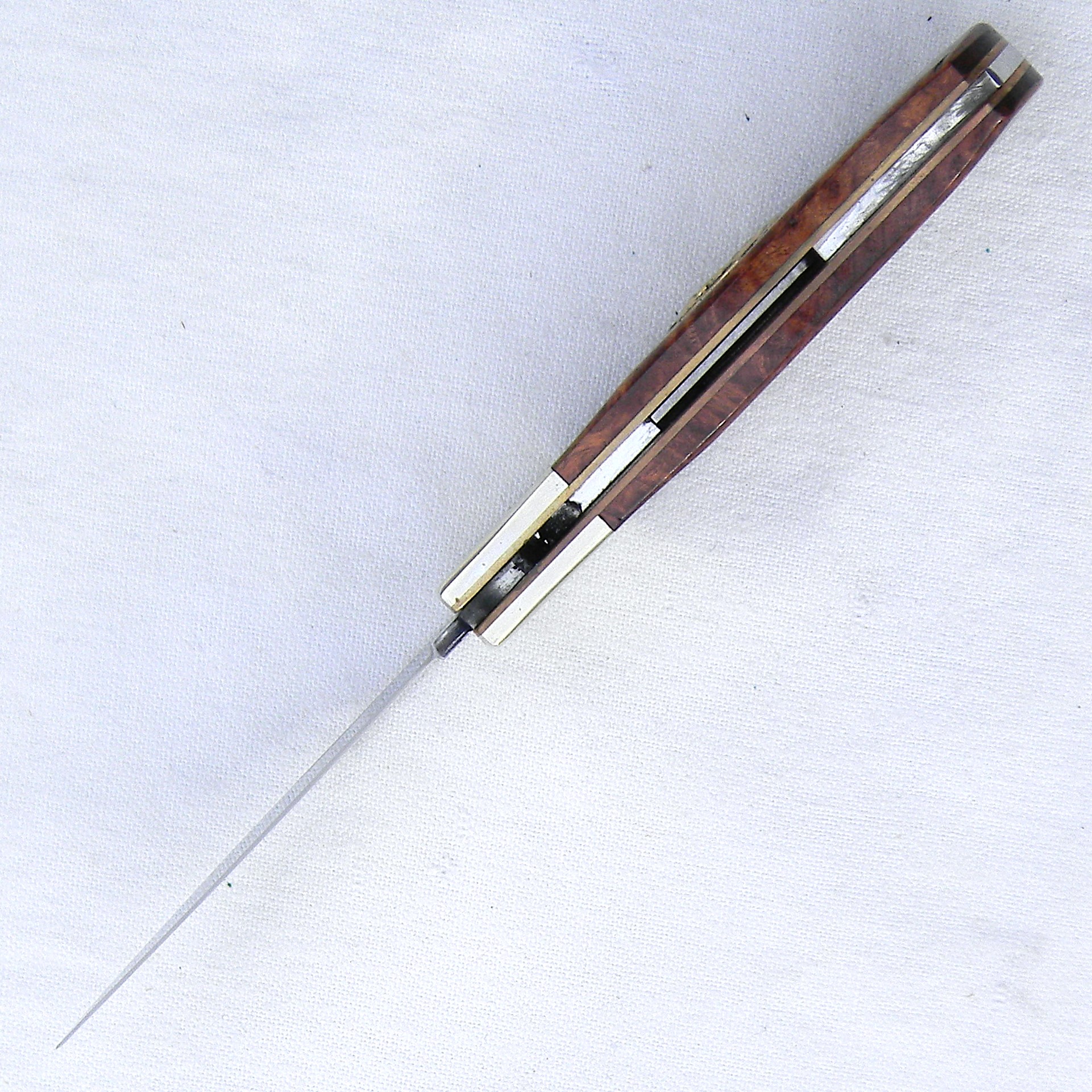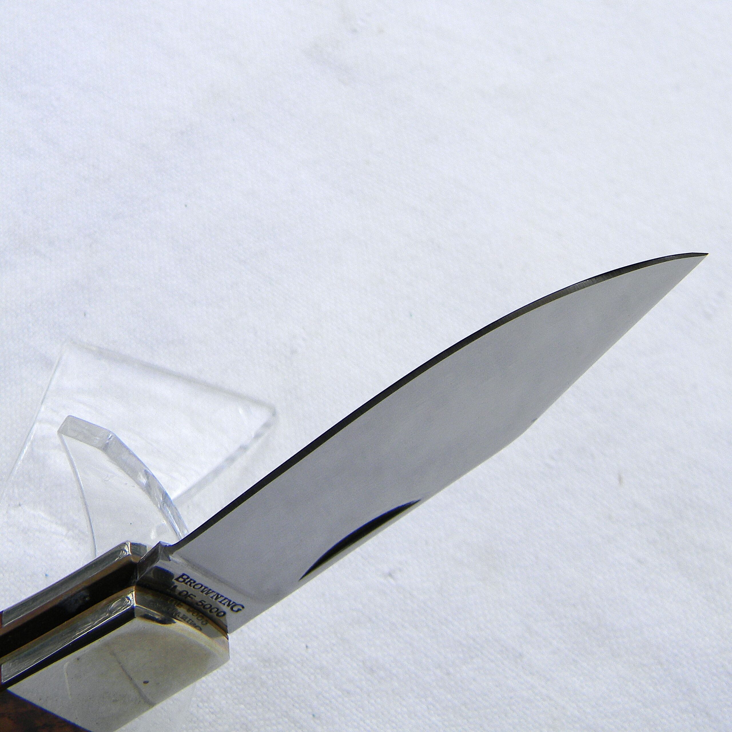 The knife is about 6-5/8″ / 17 cm fully opened; mirror-polished 440C stainless blade is about 3” / 7.6 cm. Exotic quince burl handle scales; blade lock is in perfect working order. Original edge is razor-sharp, the tip is intact; the blade is tight with no play. The knife has never been used or carried; engraved presentation hardwood case is in great shape as well. Overall condition is excellent; this vintage John Browning 1994 limited edition knife will make an excellent addition to any collection.