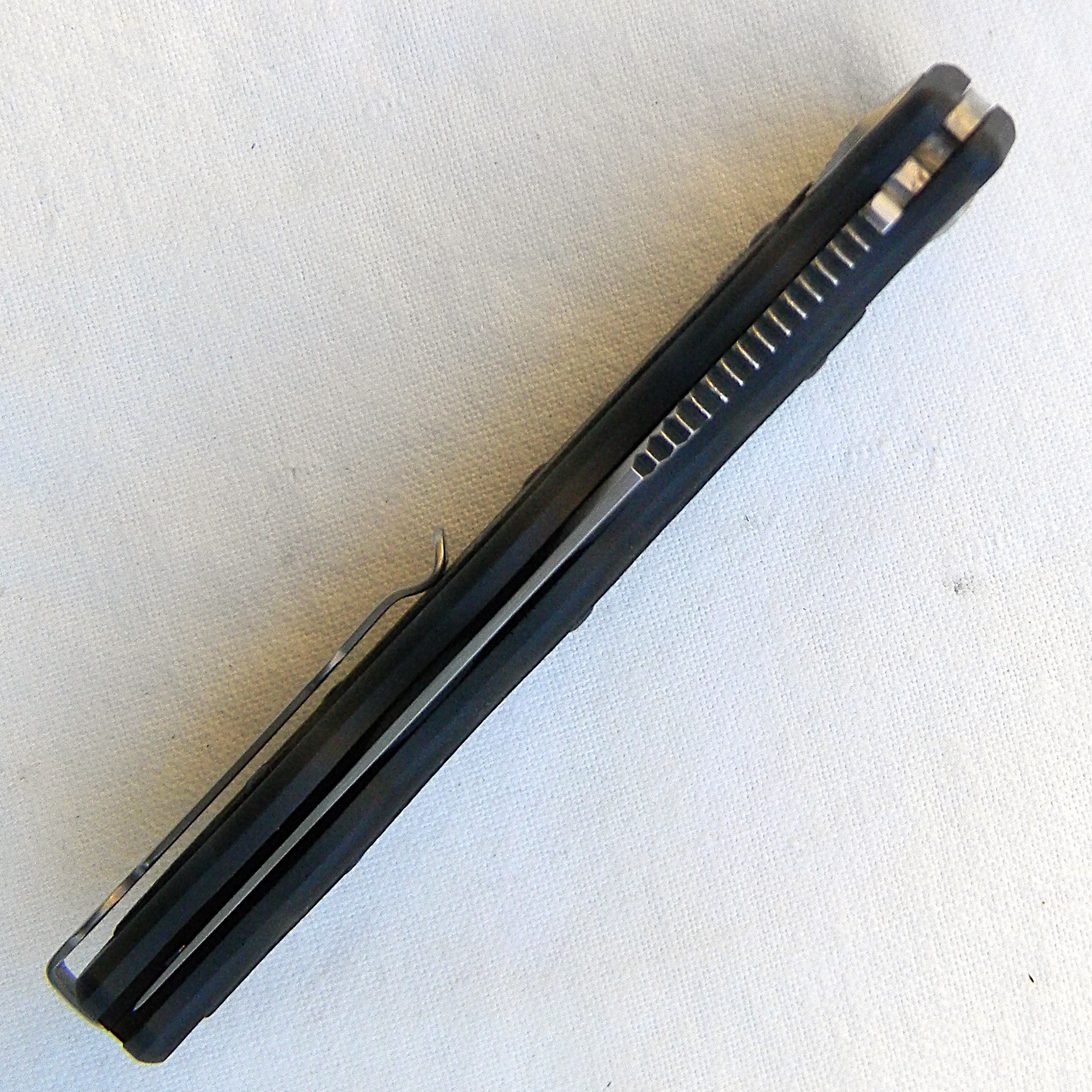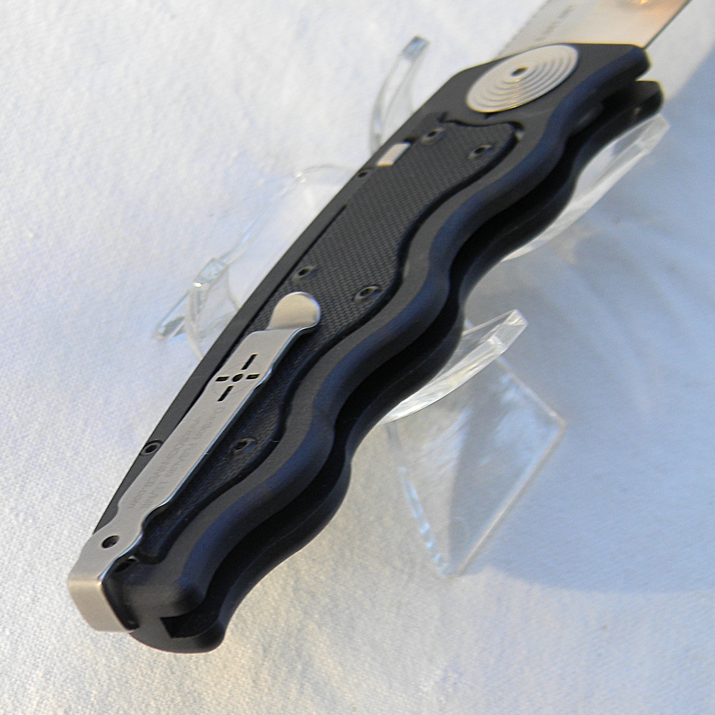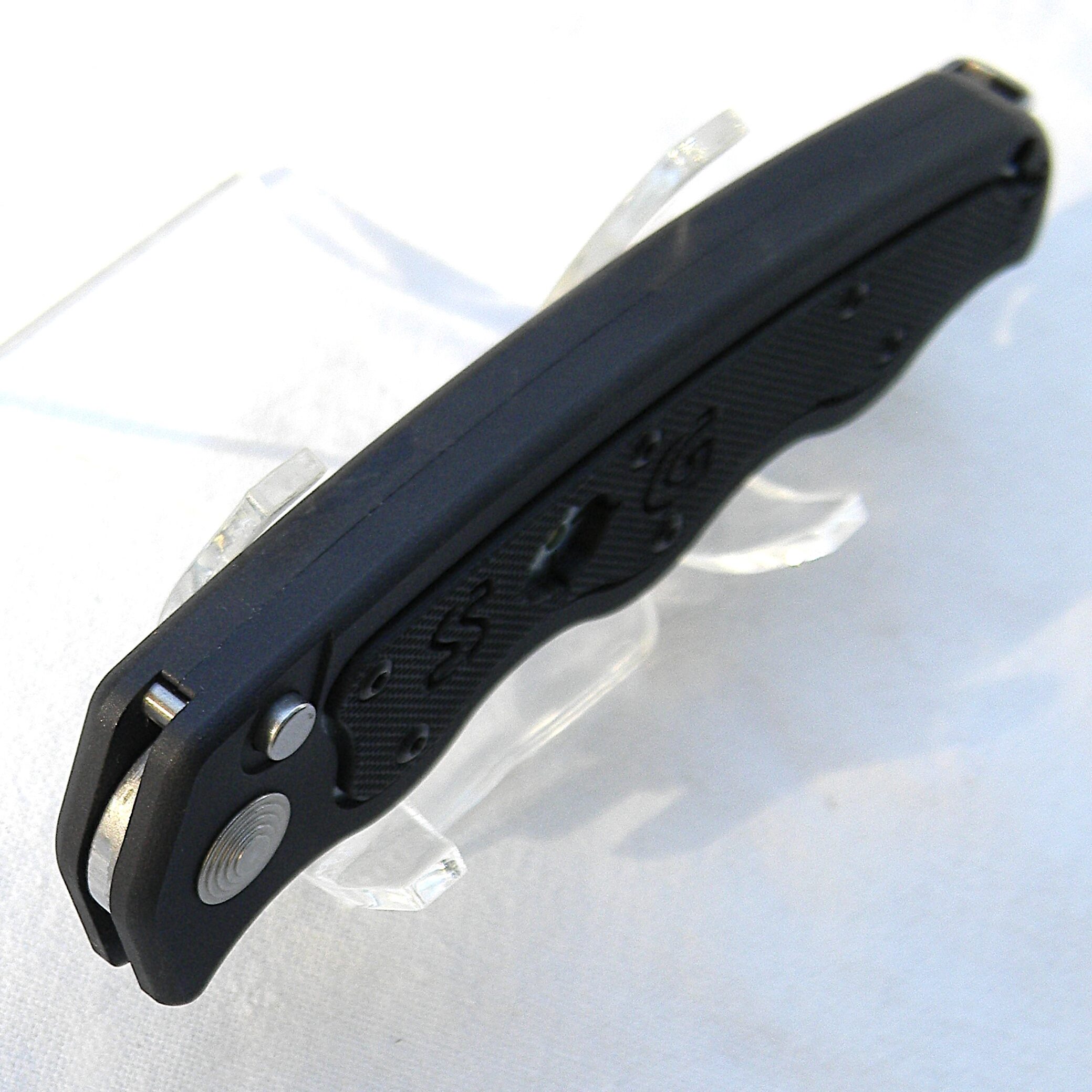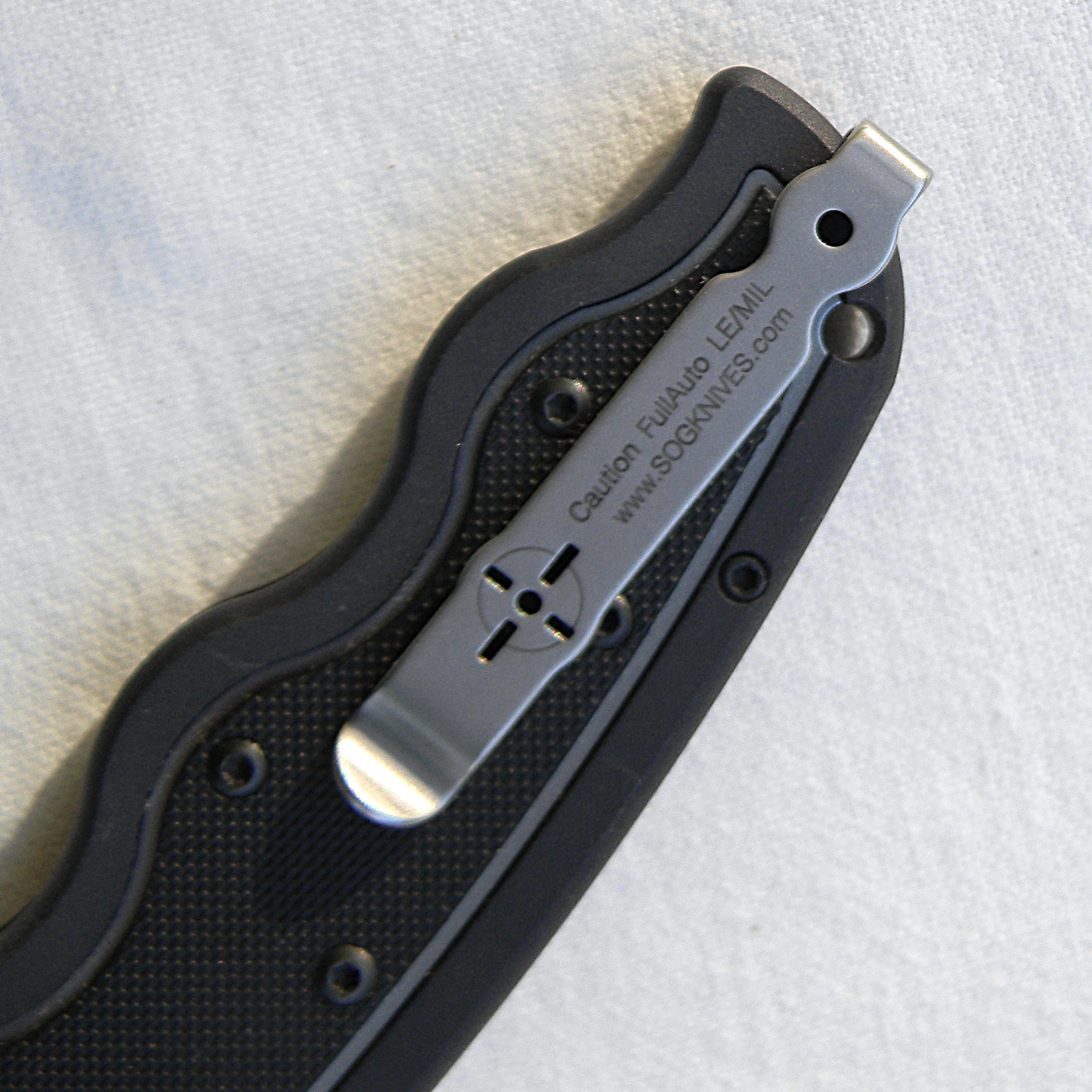 This slim profile folder is about 8″ / 20.3 cm overall fully opened; the blade is about 3-1/2″ / 9 cm. Original factory edge is razor-sharp; the tip is intact; the spring is nice and tight; blade safety lock is in perfect working order. Aluminum alloy handle frame with black plastic center panels, reversible steel pocket clip. This SOG-TAC Auto has not been cleaned or tampered with in any way, it’s in 100% original “as is” condition; these are the actual photos. This type is hard to find this nice and complete; don’t miss your chance to add this SOG-TAC Auto folder to your collection!