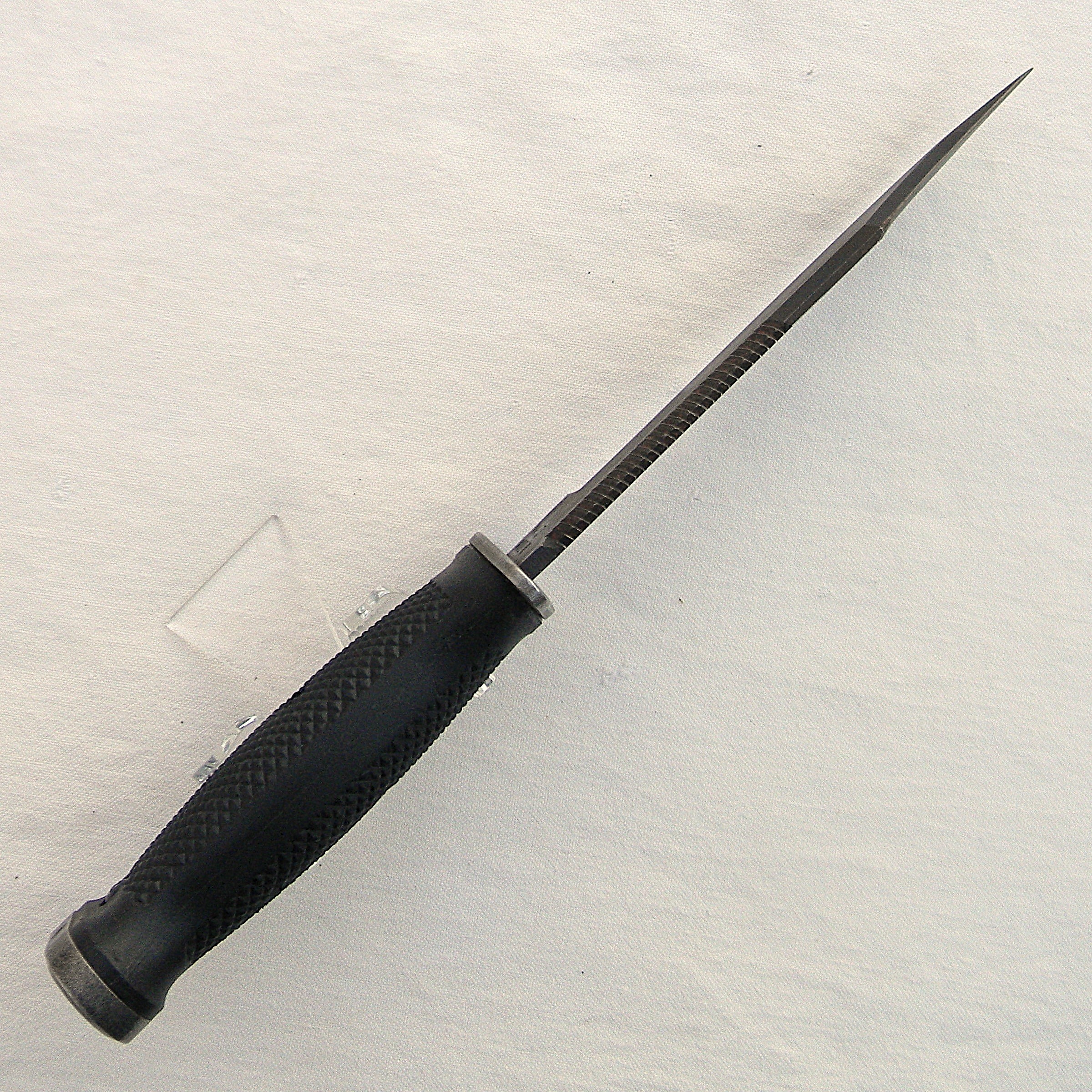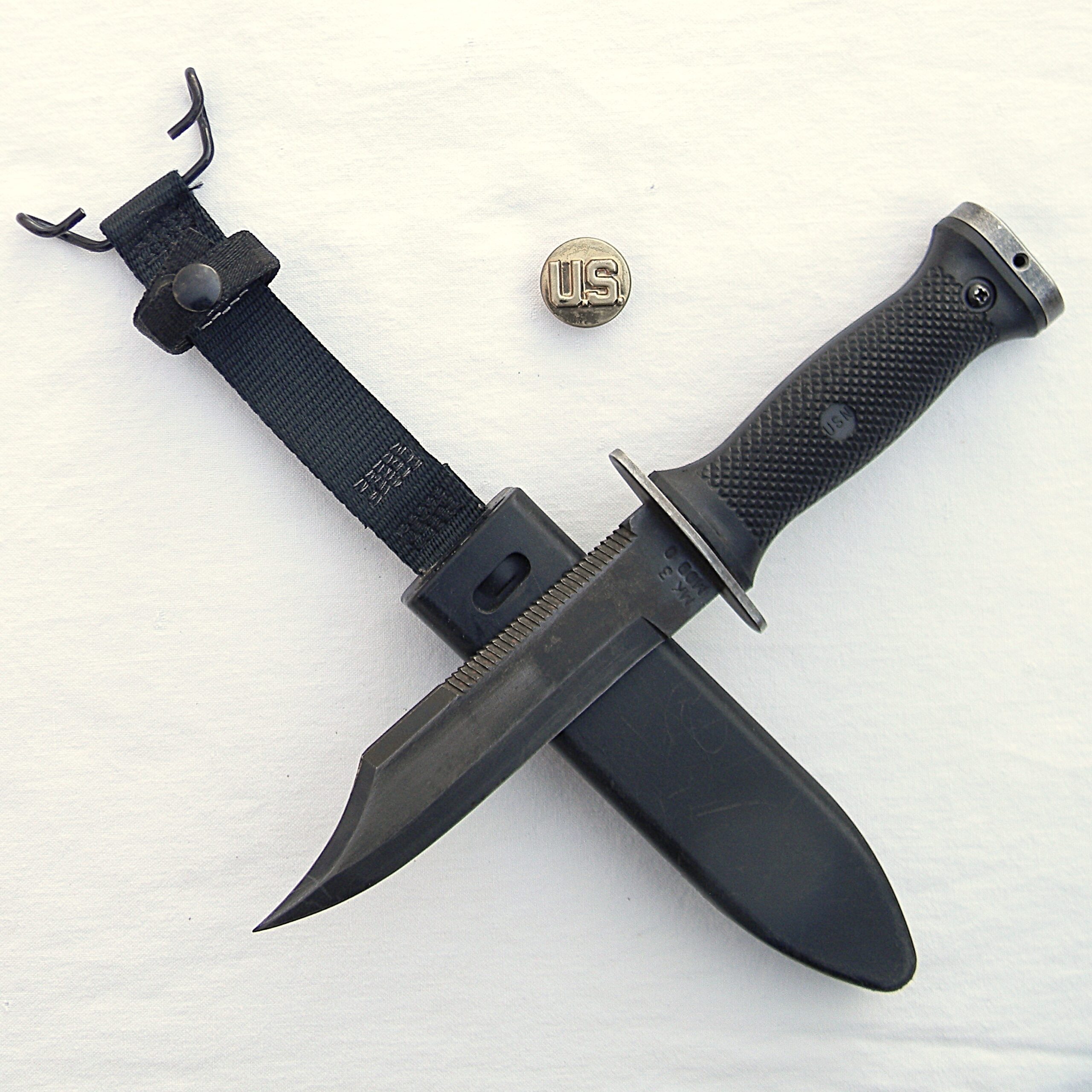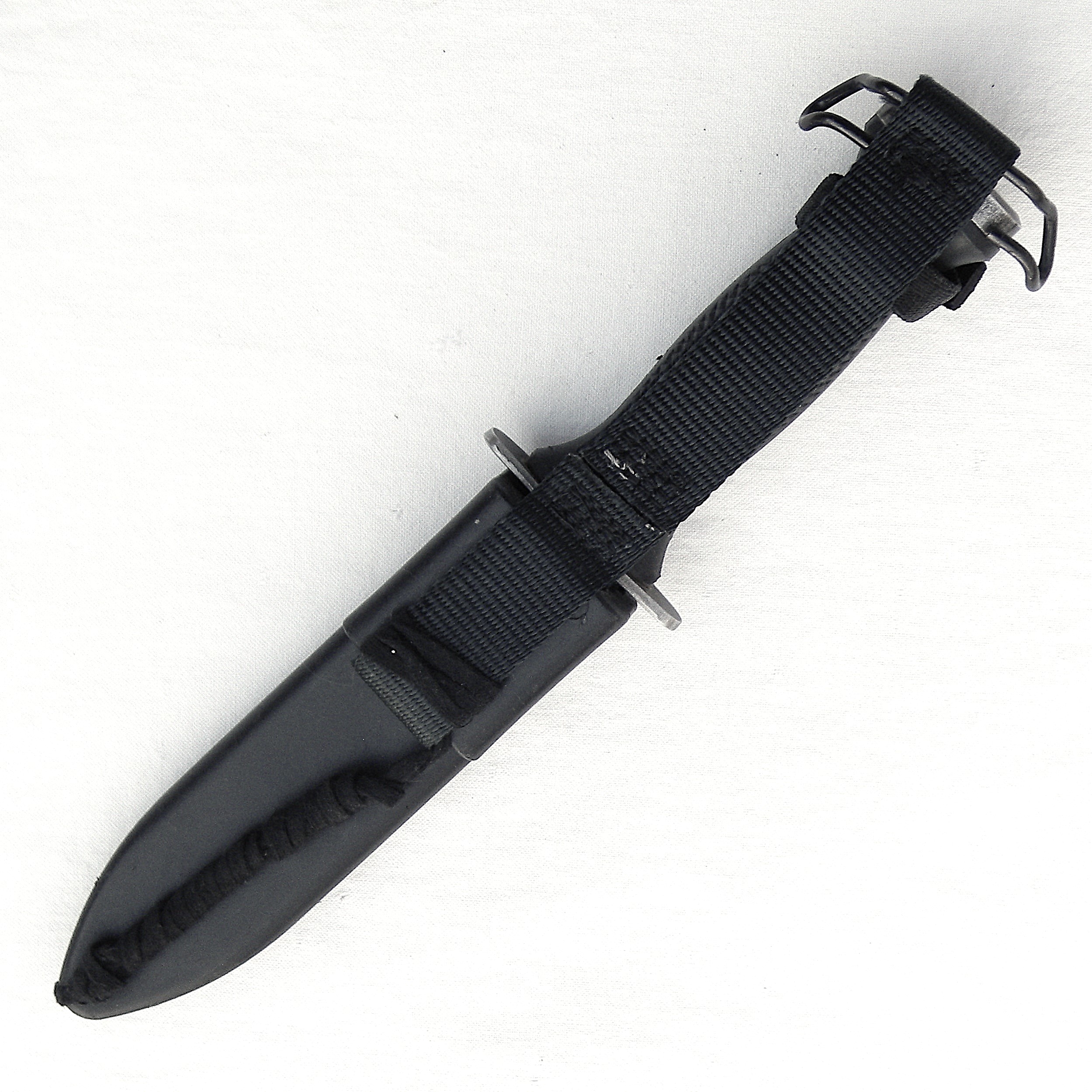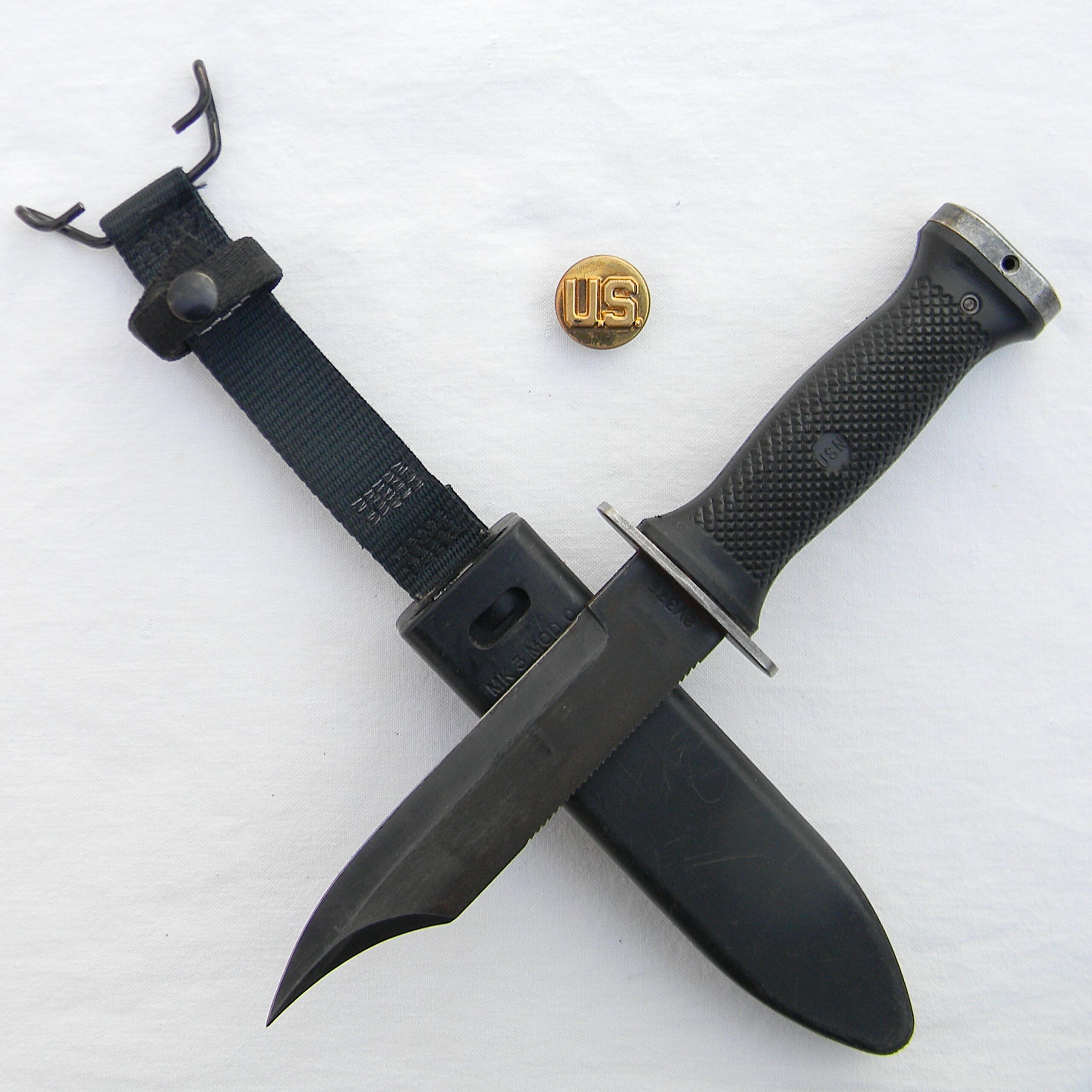 USN MK3 dive knife made by Ontario, original black plastic scabbard; slightly used. US military issue – this type was used by USN SEAL teams in 1975-early 2000s. FREE EXPEDITED SHIPPING WITHIN THE U.S. FOR THIS ITEM.