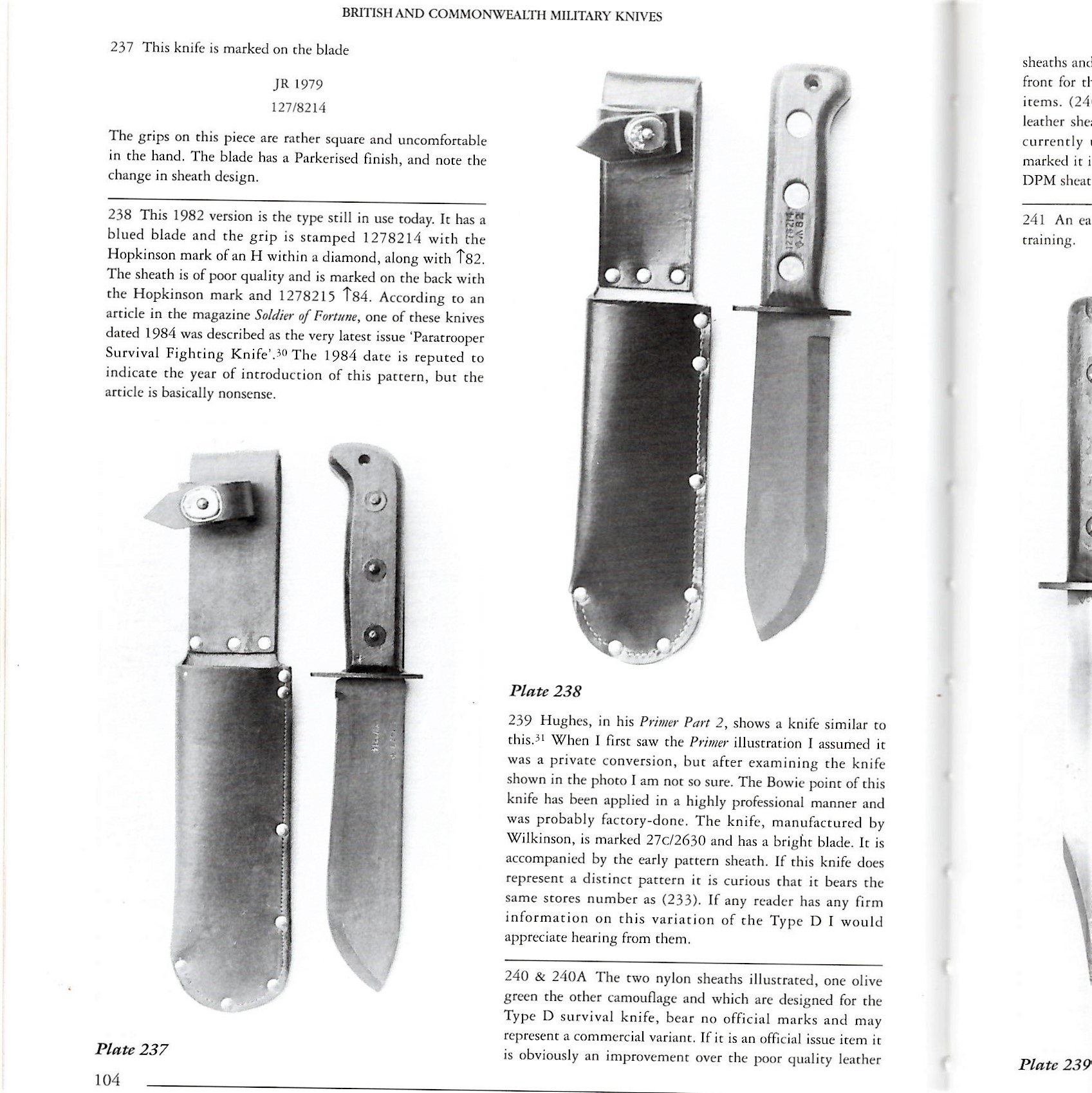 This is a rare 1st production pattern of the classic British military Type D survival/fighting knife manufactured by several makers for the British Royal Air Force in the 1960th – early 1970th. This particular specimen was manufactured by the famous John Nowill & Sons in Sheffield, England – the blade is sharply stamped with the company logo and the “broad arrow” acceptance stamp on one side. The “Type D” was designed after WW2 for the use by the British Para and later adapted as an official “survival knife” by several NATO members. This exact type is illustrated on pages 101-102 of the excellent reference book BRITISH AND COMMONWEALTH MILITARY KNIVES by Ron Flook (see the book’s pages scans attached). This scarce 1st pattern specimen is in rare unused condition AND it includes a hard-to-find original leather scabbard. The first production series had famously flimsy leather scabbards that just didn’t stand-up to the real-life challenges. That’s why most of these early Type D knives are usually sold alone, without a scabbard. I have a rare pre-production 1st Pattern RAF Type D survival knife specimen available for sale as well; please take a look.