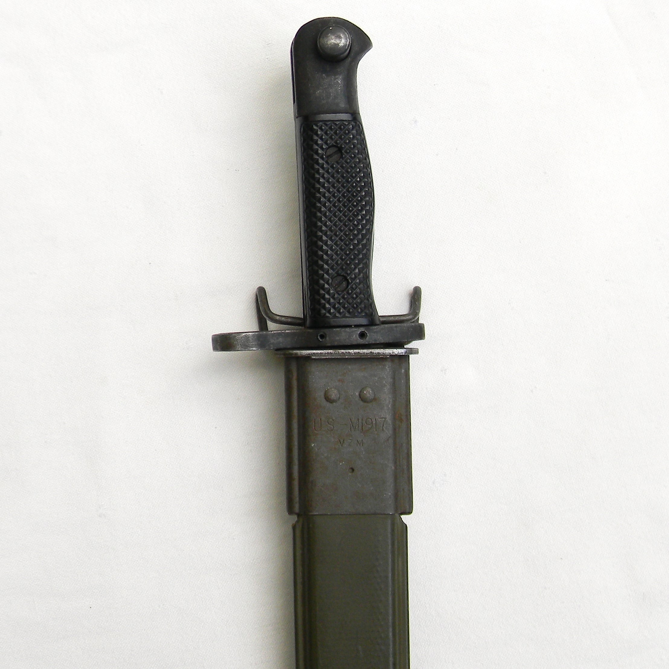 Vietnam War Gen Cut M1917 trench gun bayonet made in the 1960th by General Cutlery in Fremont, OH; original VZM composition scabbard. Scarce type in rare UNUSED condition; hard-to-find this nice.