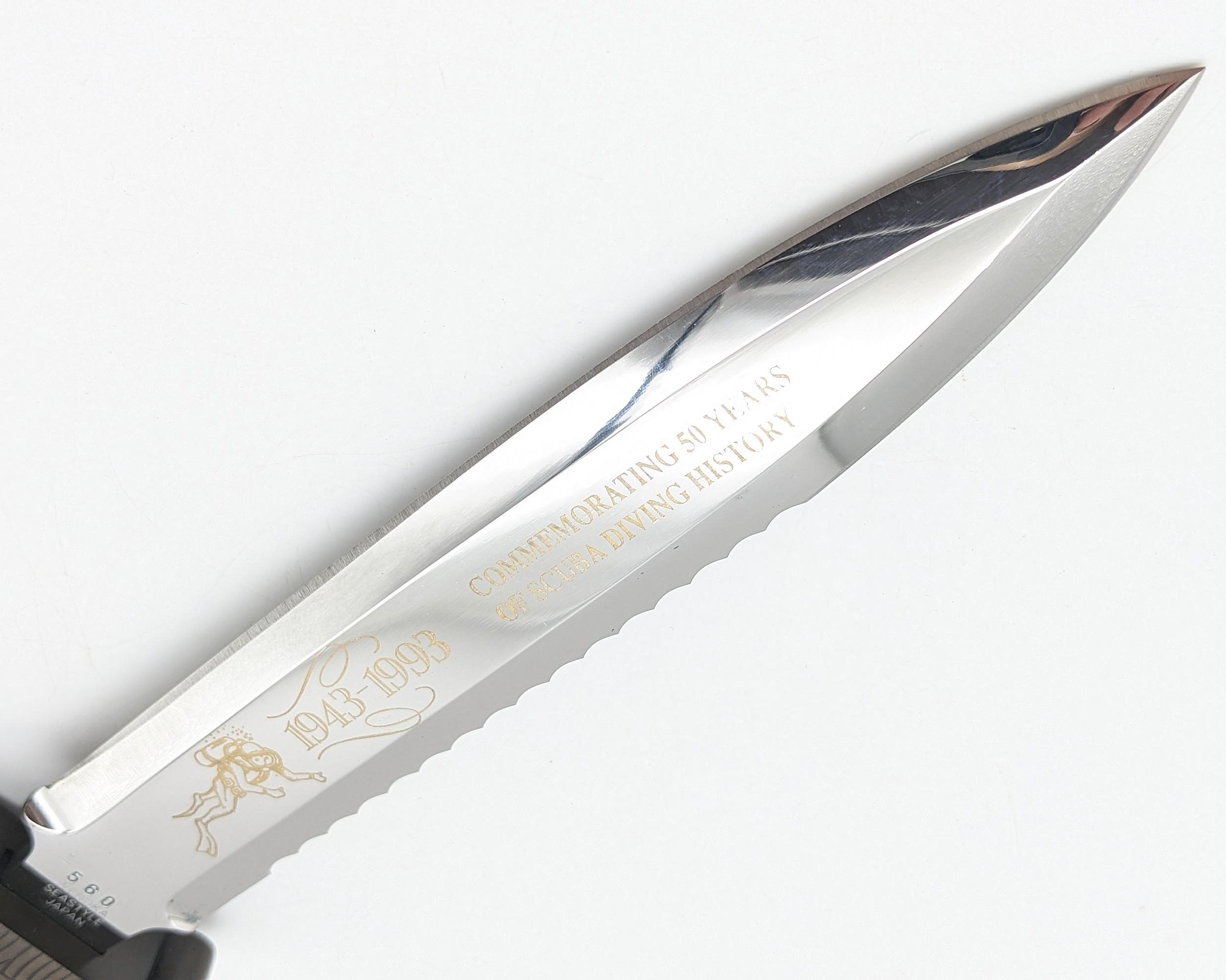 Wenoka Japan 1993 Scuba Diving History knife, limited edition 1943-1993 50 years of Scuba Diving commemorative issue; rare unused in original retail box.