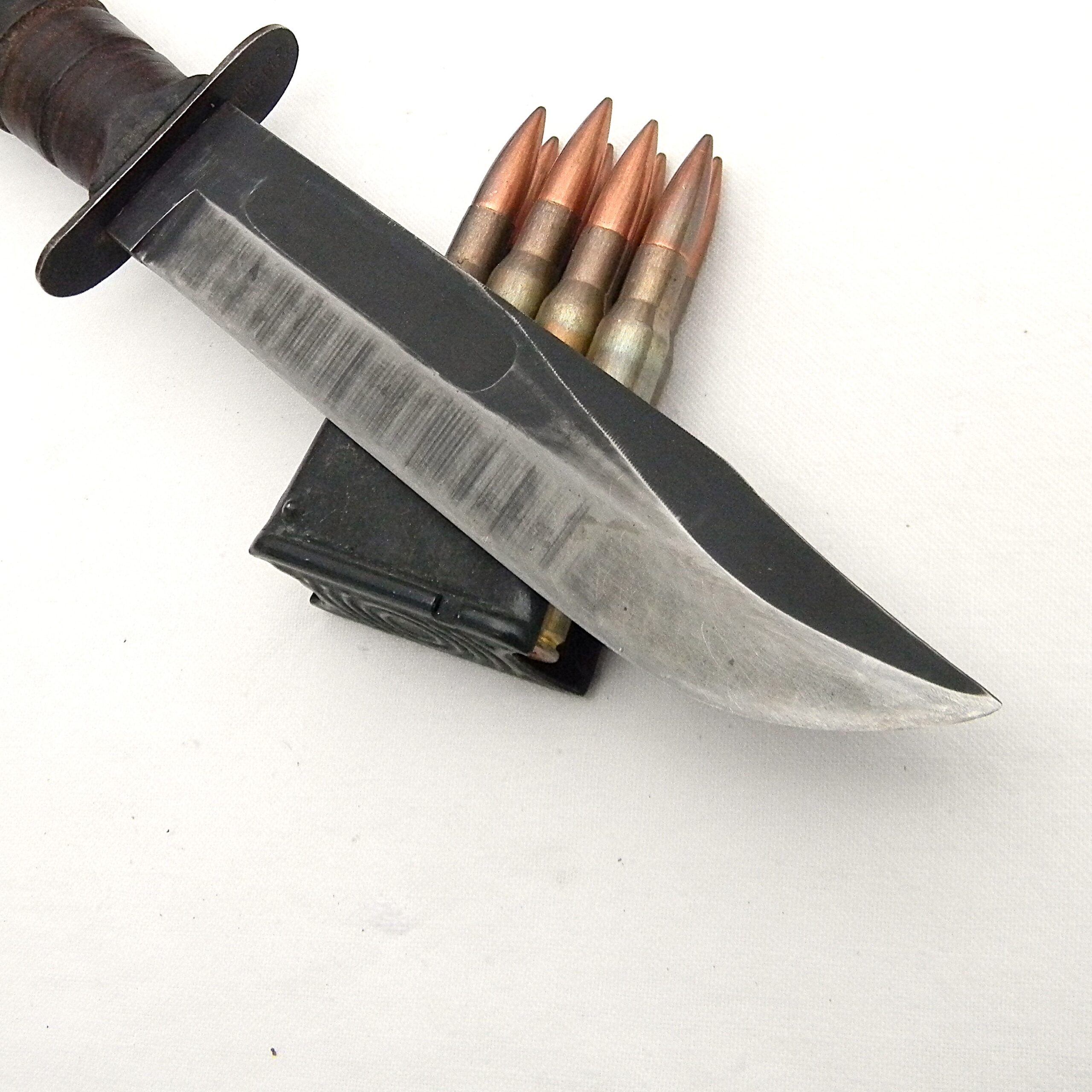 During the war most of the USMC MK2s were used in the field as intended; these early MK2s are hard-to-find this nice. This rare WW2 Camillus USMC MK2 fighting knife will be a great addition to any collection. This attractive MK2 fighter has not been cleaned or tampered with in any way, it is in 100% original “as is” condition. These are the actual photos; Garand clips are not included with the knife 😉