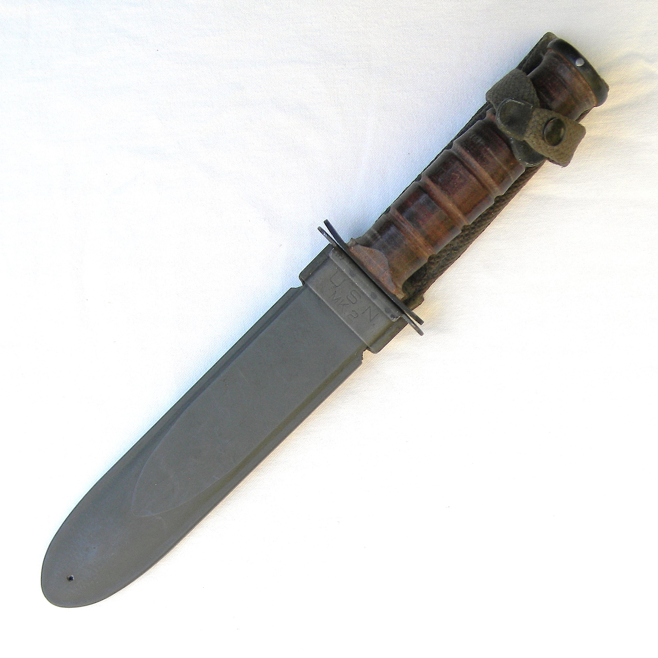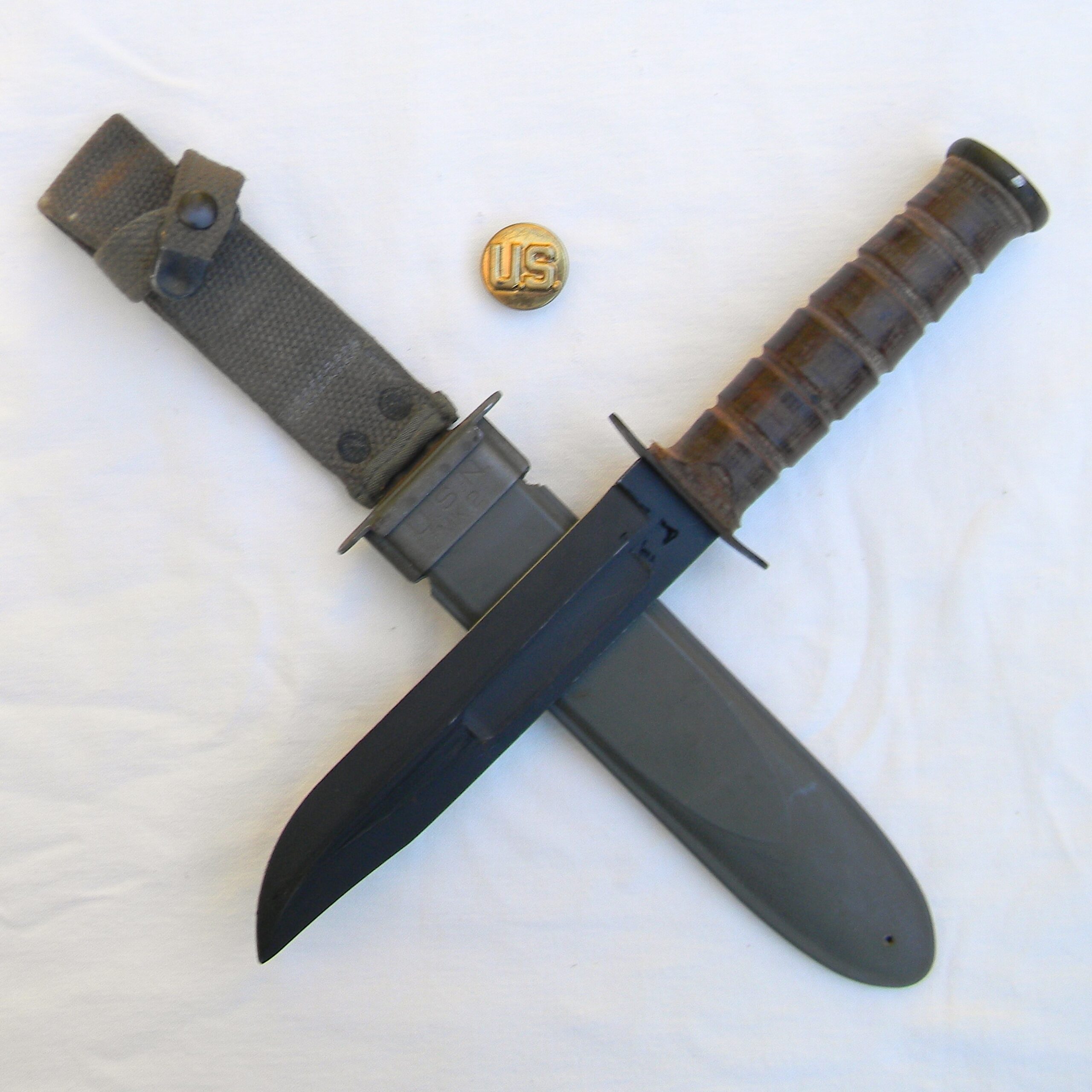 Original WW2 era famous US Navy Mark 2 “Ka-Bar” fighting knife (the link is a courtesy of Wikipedia) manufactured by Camillus Cutlery in Camillus, NY. Also, I have a rare early-production Camillus MK2 1st Model available for sale; please take a look.
