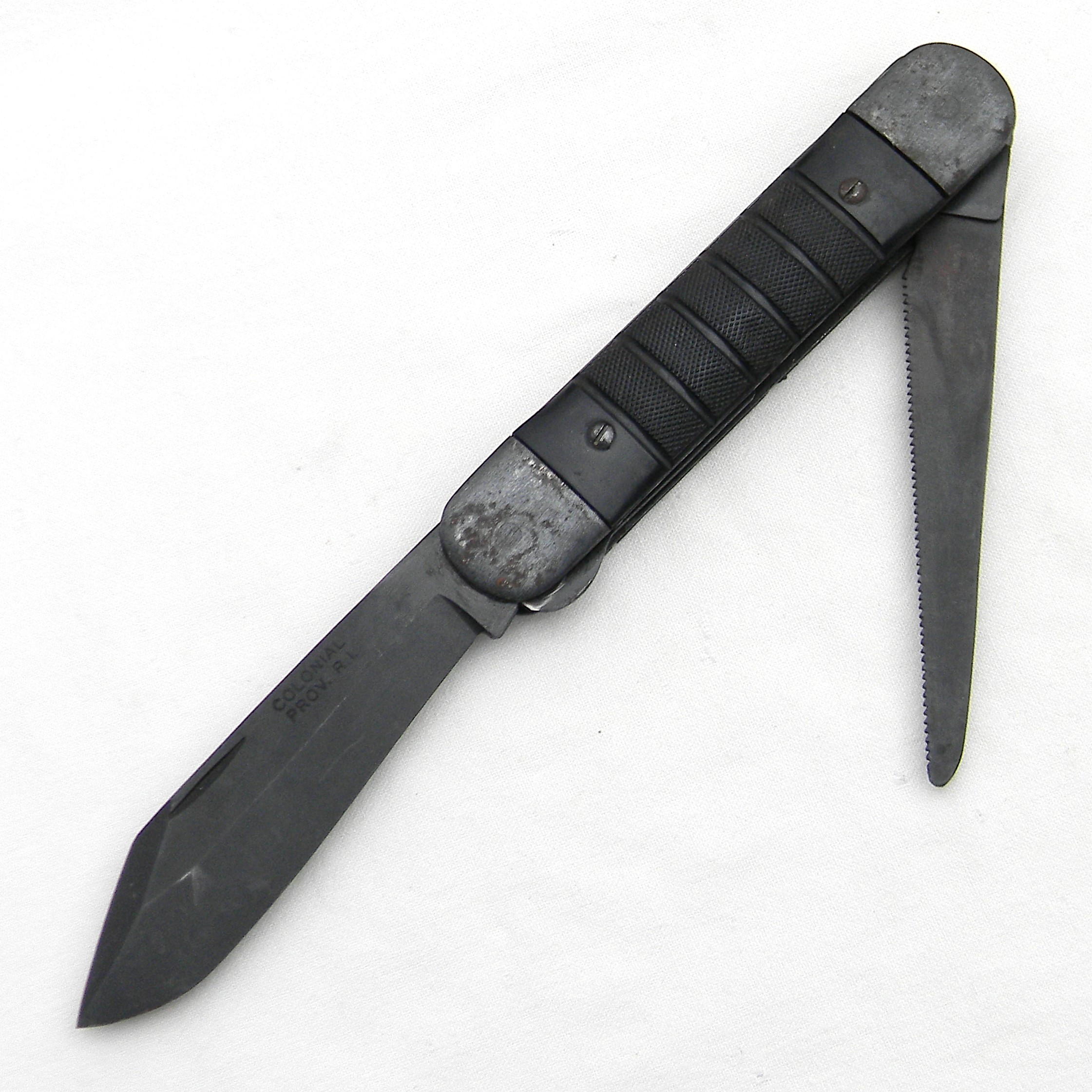 WW2 Colonial survival knife – part of USAF/USN pilots’ survival kits; huge 4-3/4″ blade, intact saw. Scarce type mega rare UNUSED condition with original finish and factory edge. FREE EXPEDIETD SHIPPING WITHIN THE U.S. FOR THIS ITEM.