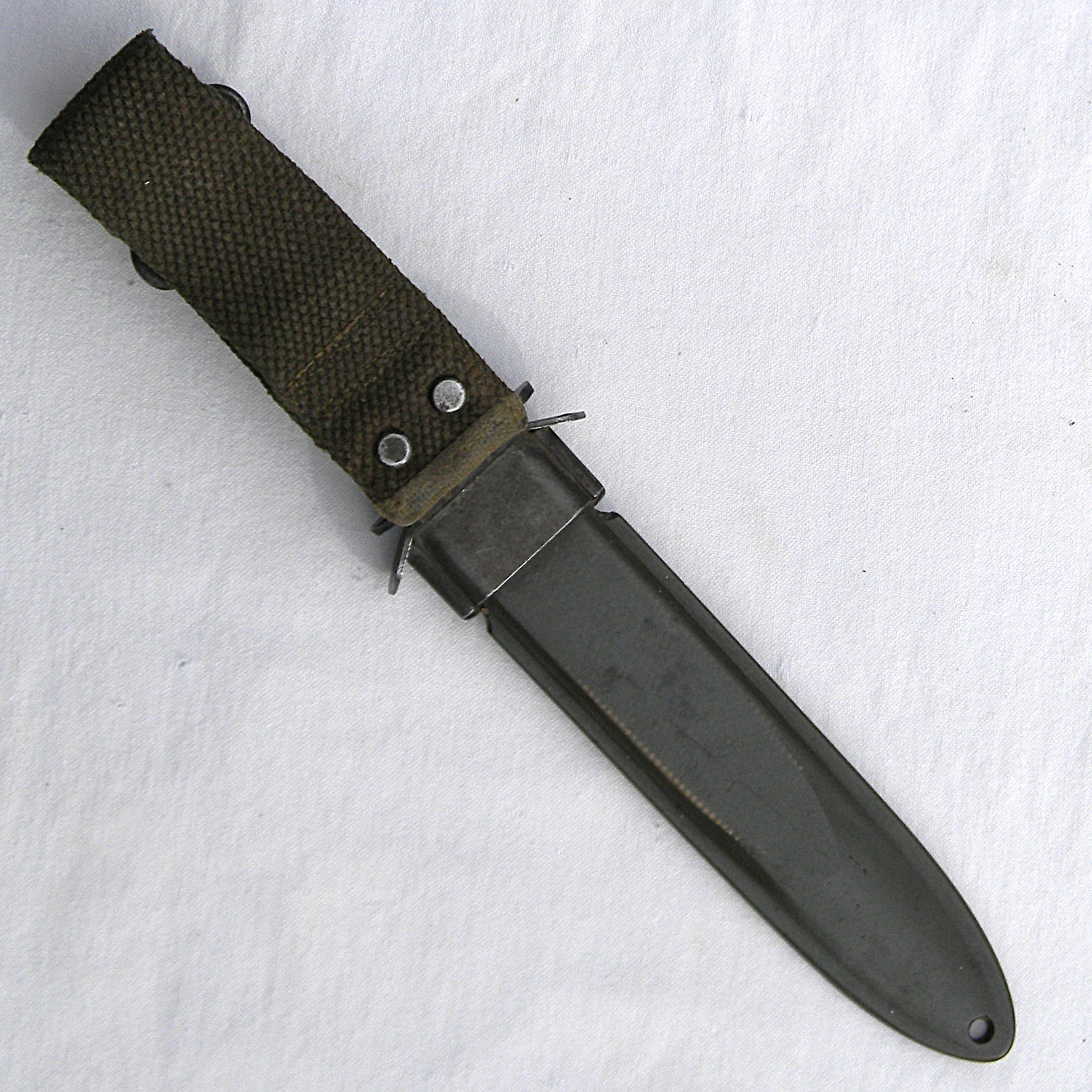 Original WW2 era American fighting knife manufactured by a little known knife maker Dix – this this a VERY hard-to-find “private purchase” type fighter. This exact type is illustrated on page 113 of the KNIVES OF THE UNITED STATES MILITARY WORLD WAR II book by Michael W Silvey – a well-established expert and author of many books on the subject of US military edged weapons (see the page’s scan attached).