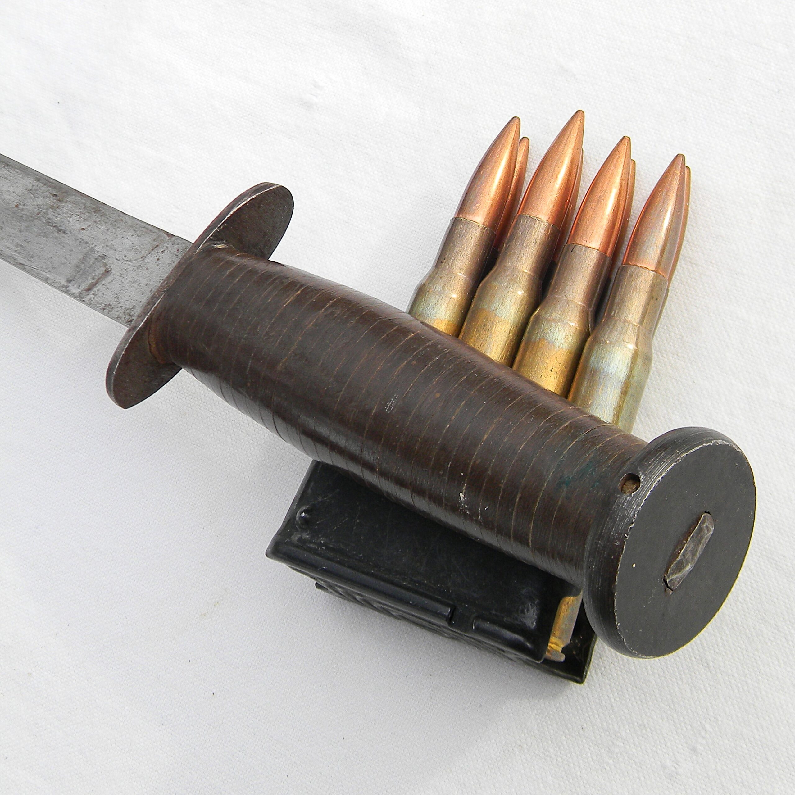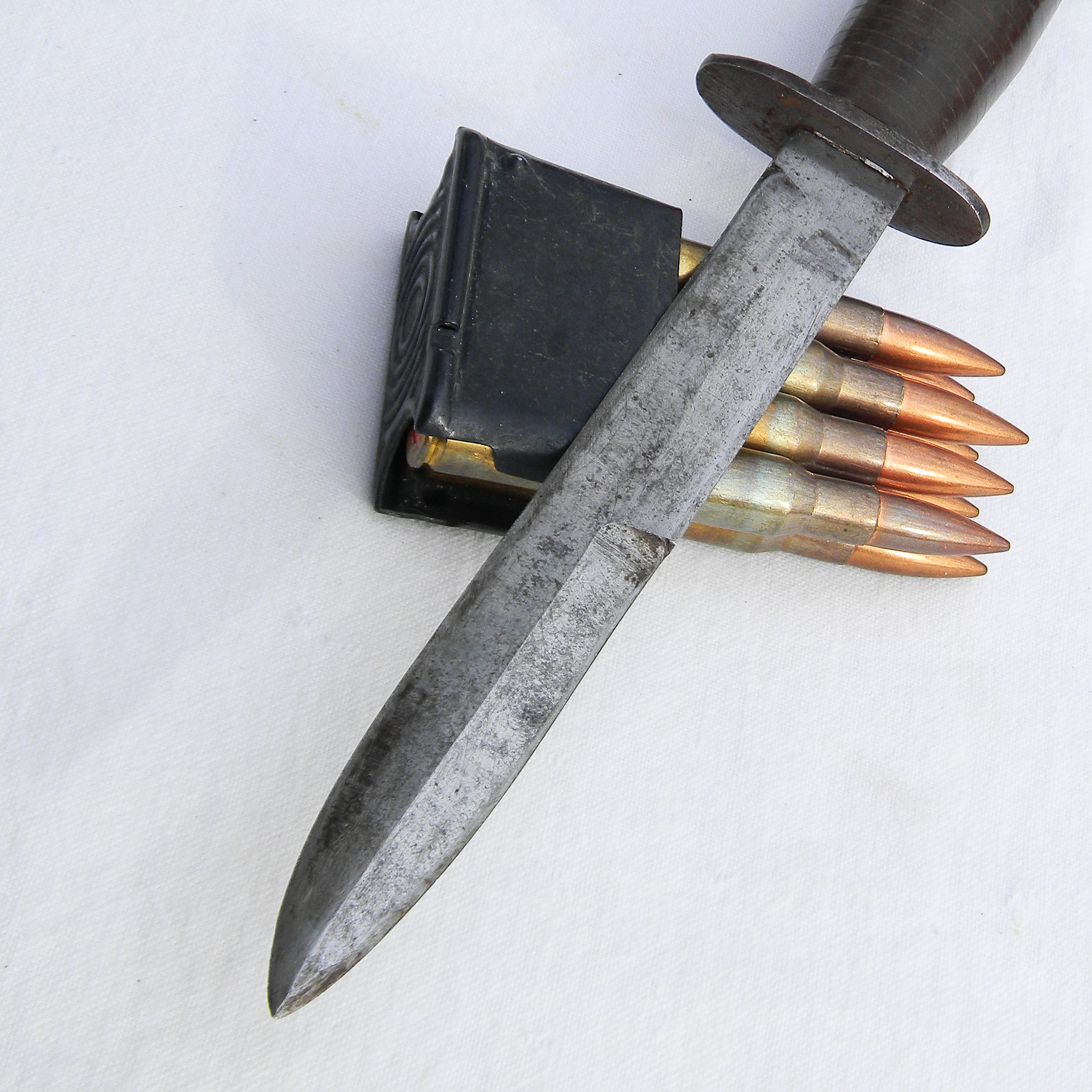 This rare WW2 Dix fighting knife has not been cleaned or tampered with in any way, the set is in 100% original “as is” condition; this type is rare in unused condition. These are the actual photos; Garand clips are not included with the knife I have a few more WW2 US-made bayonets, as well as some scarce WW1 and WW2 era fighting daggers and trench knives made in the US, Great Britain, France, Germany, and other countries available for sale – please take a look in the Militaria section.
