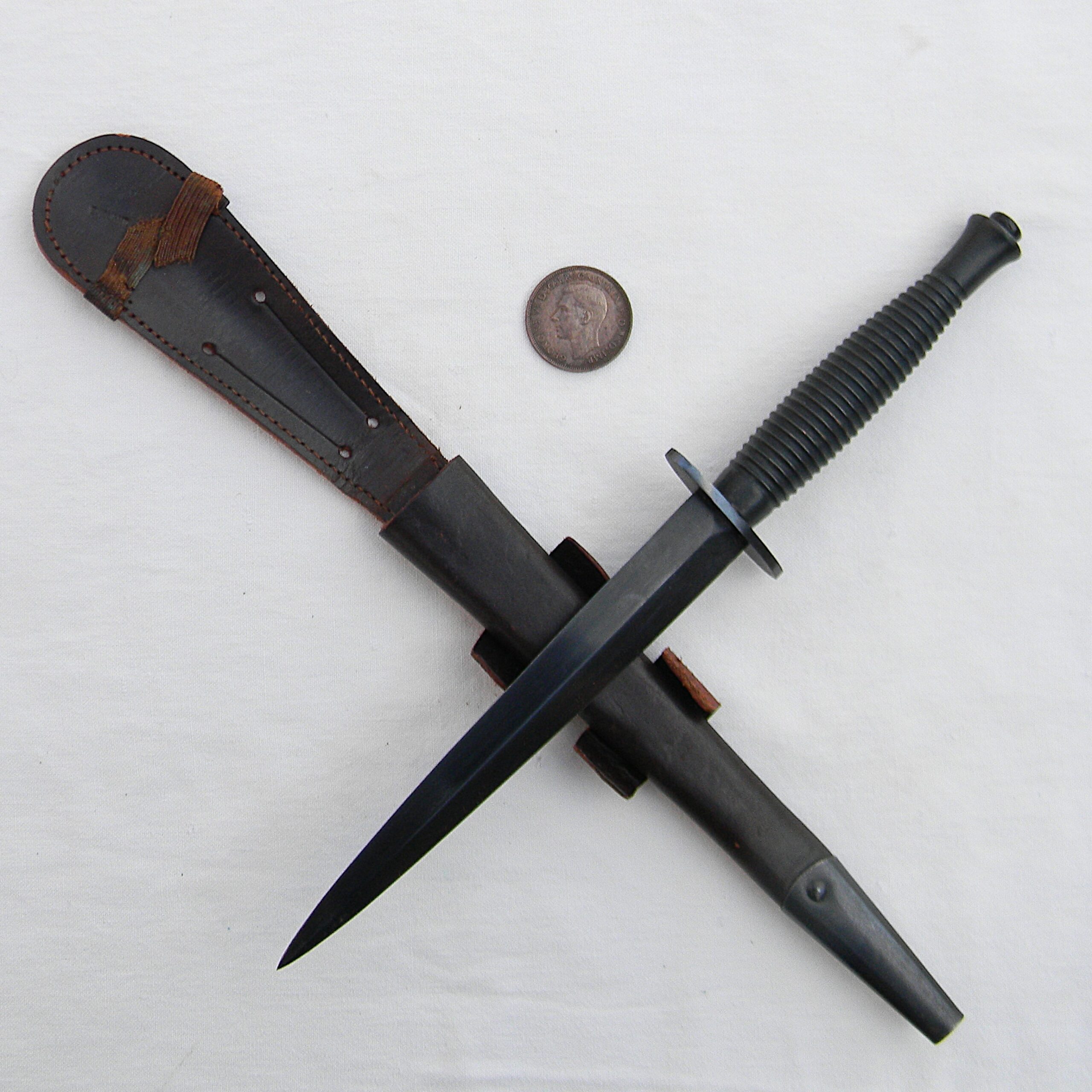 WW2 Fairbairn Sykes dagger – British FS fighter 3rd pattern dated 1942, original metal-tipped leather scabbard included. Great overall condition, considering the age. FREE EXPEDITED SHIPPING WITHIN THE U.S. FOR THIS ITEM.