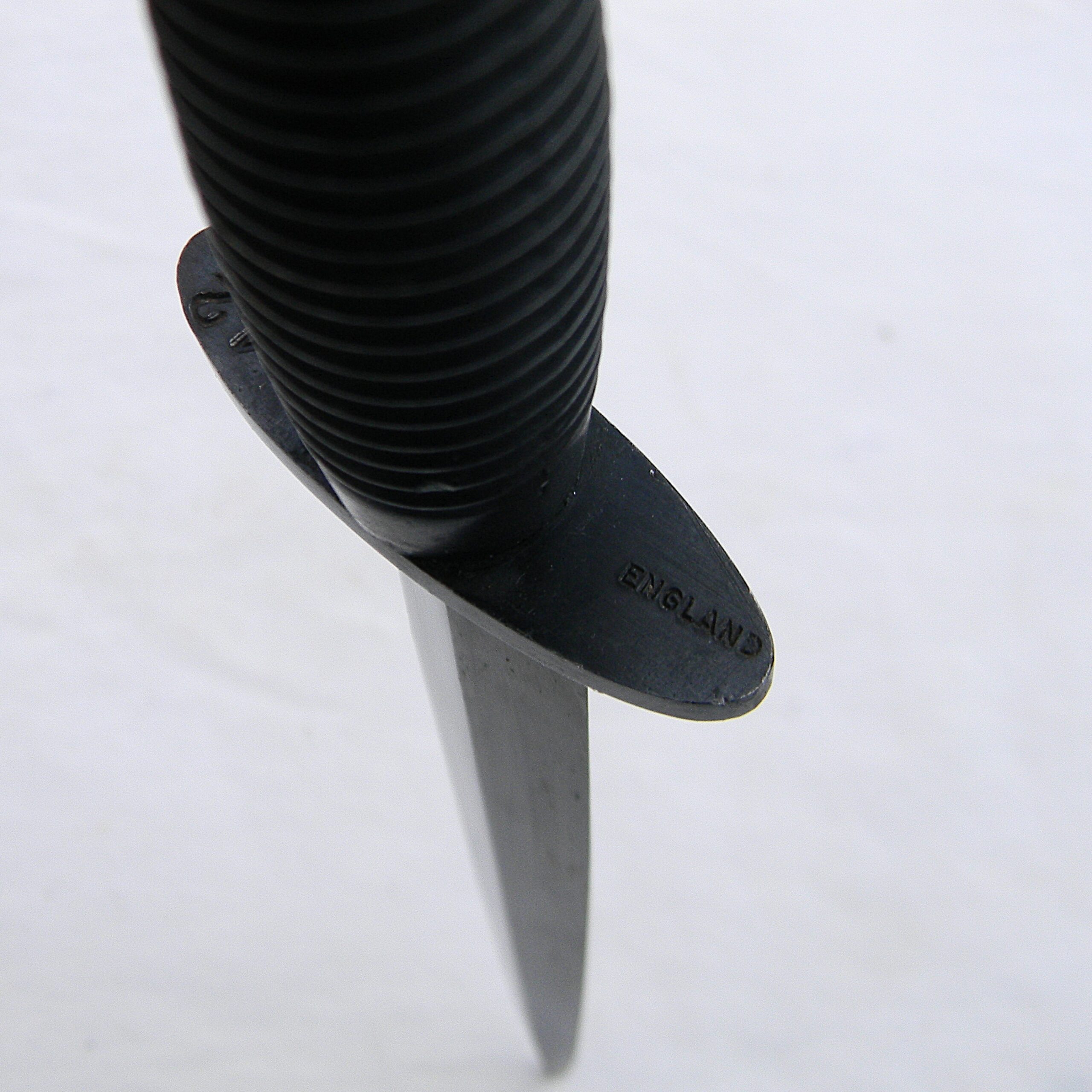 This classic British WW2 Fairbairn-Sykes FS dagger has not been cleaned or tampered with in any way, it is in 100% original “as is” condition. These are the actual photos; Lee Enfield clip is not included with the lot I have a few more British-made knives & daggers, several fighting knives made from converted sabers, as well as some scarce WW1 and WW2 fighting daggers and trench knives available for sale – please take a look in our Militaria section. I also have a very rare US-made Camillus OSS stiletto fighting dagger that was modeled after the British FS dagger available for sale – please take a look.