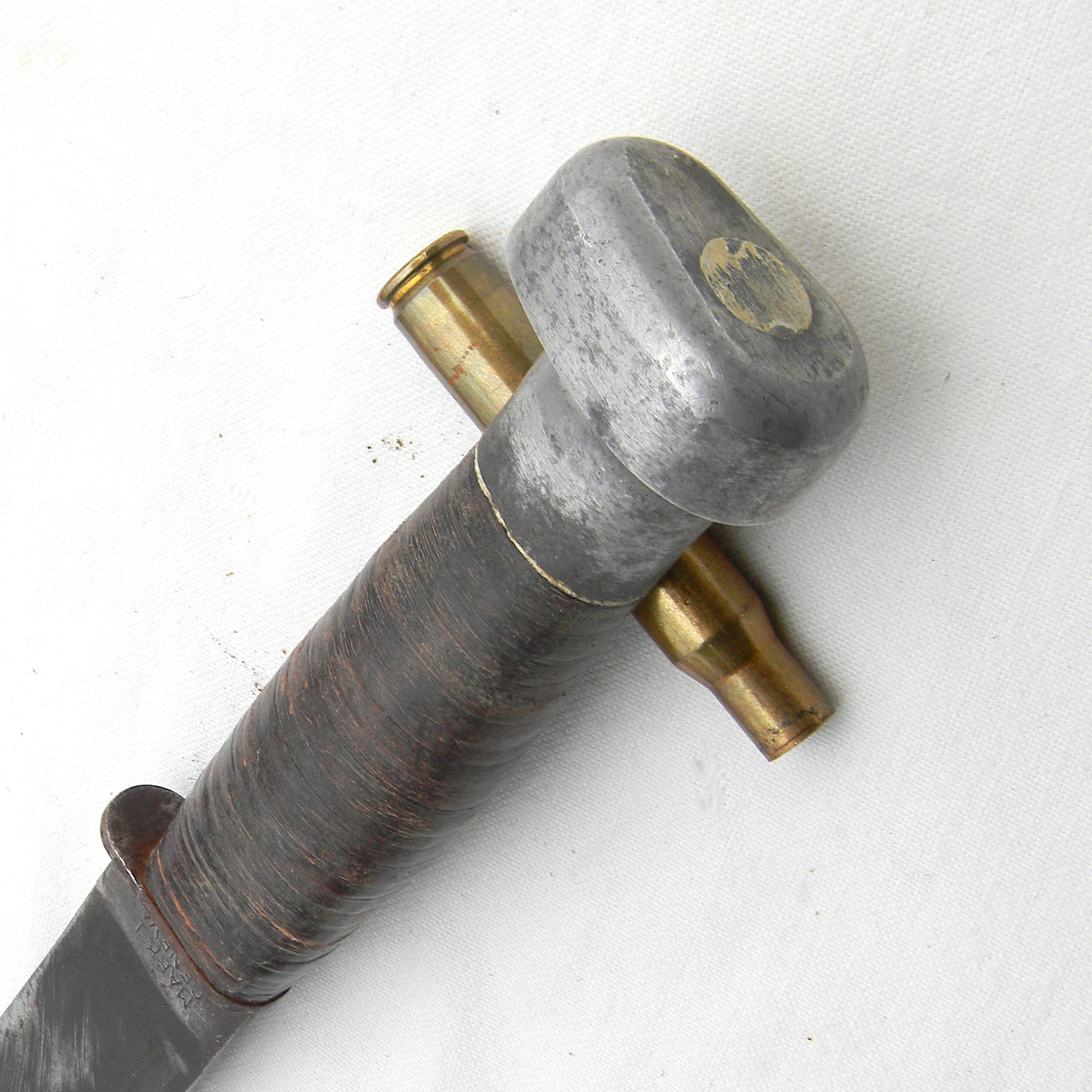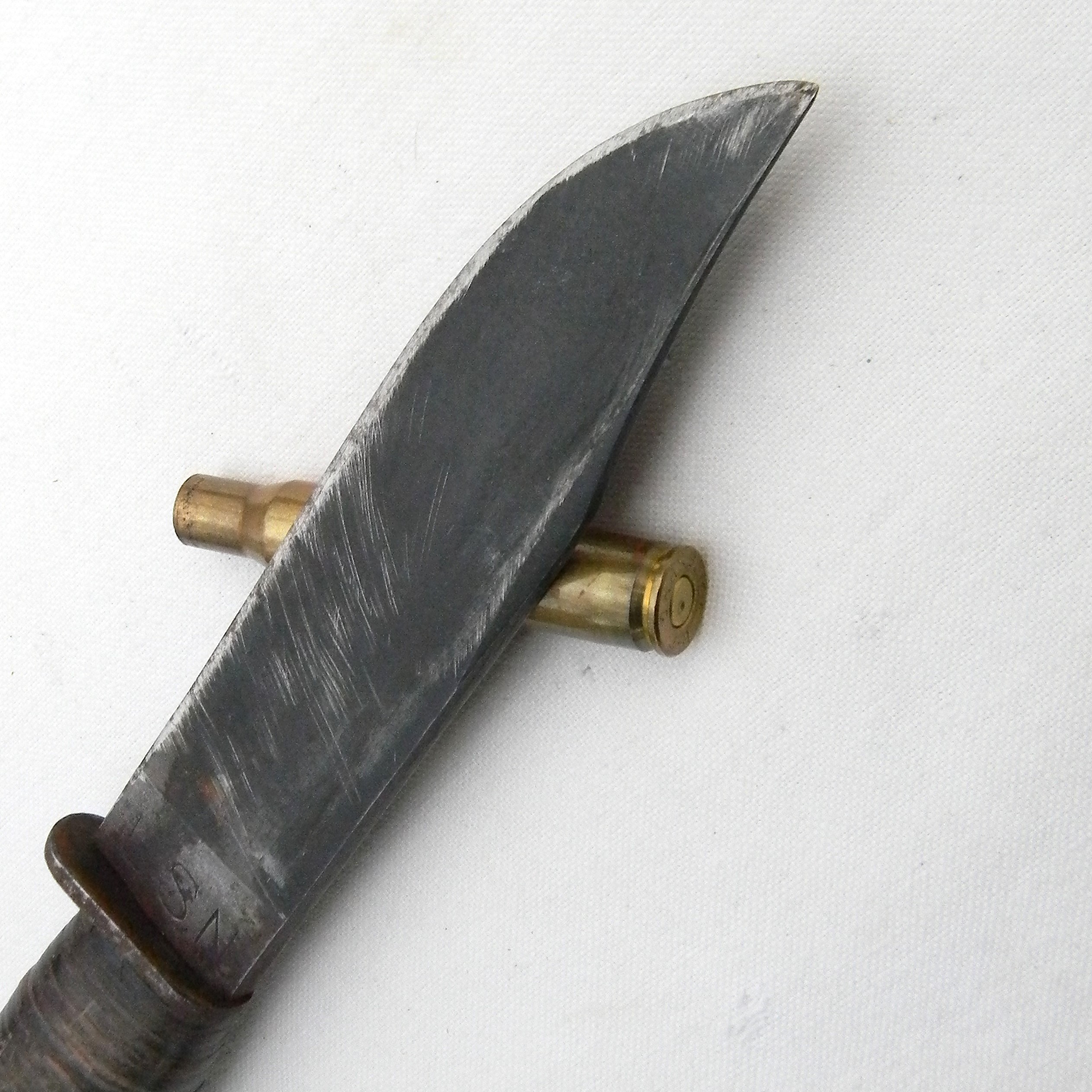 This original WW2 Geneva Forge MK1 fighting knife has not been cleaned or tampered with in any way; it is in 100% original “as is” condition. These are the actual photos; spent brass is not included with the knife 😉 I have a few more vintage American and European knives, as well as WW2 era combat knives and bayonets, scarce WW1 and WW2 fighting daggers and trench knives from other countries available for sale – please take a look in our Militaria section.