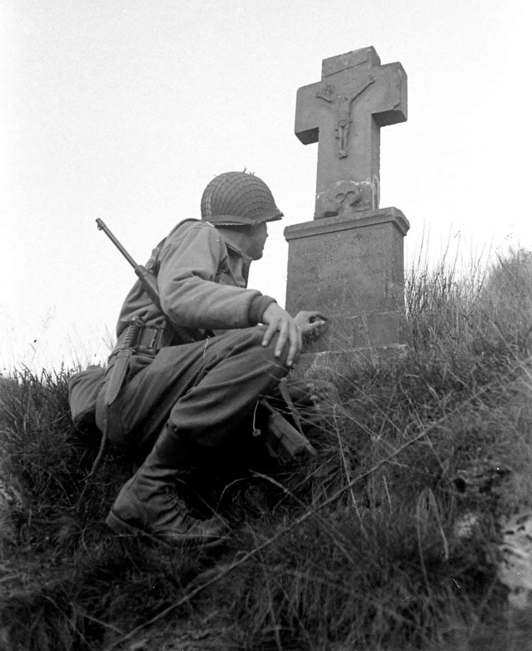 Original WW2 era M1 carbine M4 bayonet in slightly used condition; manufactured by Kinfolks, Inc. – a rare type as Kinfolks made only 119,702 M4s during the war. This M4 comes with the original issue M8 composition scabbard in great condition. The M4 was intended to be used as a bayonet on a M1 carbine but it was mostly utilized as a fighting and utility knife, just like its “big brother” M3 Trench knife. Both edged weapons were popular with the troops. See the WW2 era photo of a similar M4 bayonet on US 17th Airborne Division troops firing the M18 recoilless rifle at German positions somewhere around Essen, Germany (the photo is used as a reference only and will not be included with the lot). On the second WW2 ear photo (taken past the Siegfried line in Germany) one can clearly see that US M1 carabines did not come with a lug under the barrel to attach a bayonet.