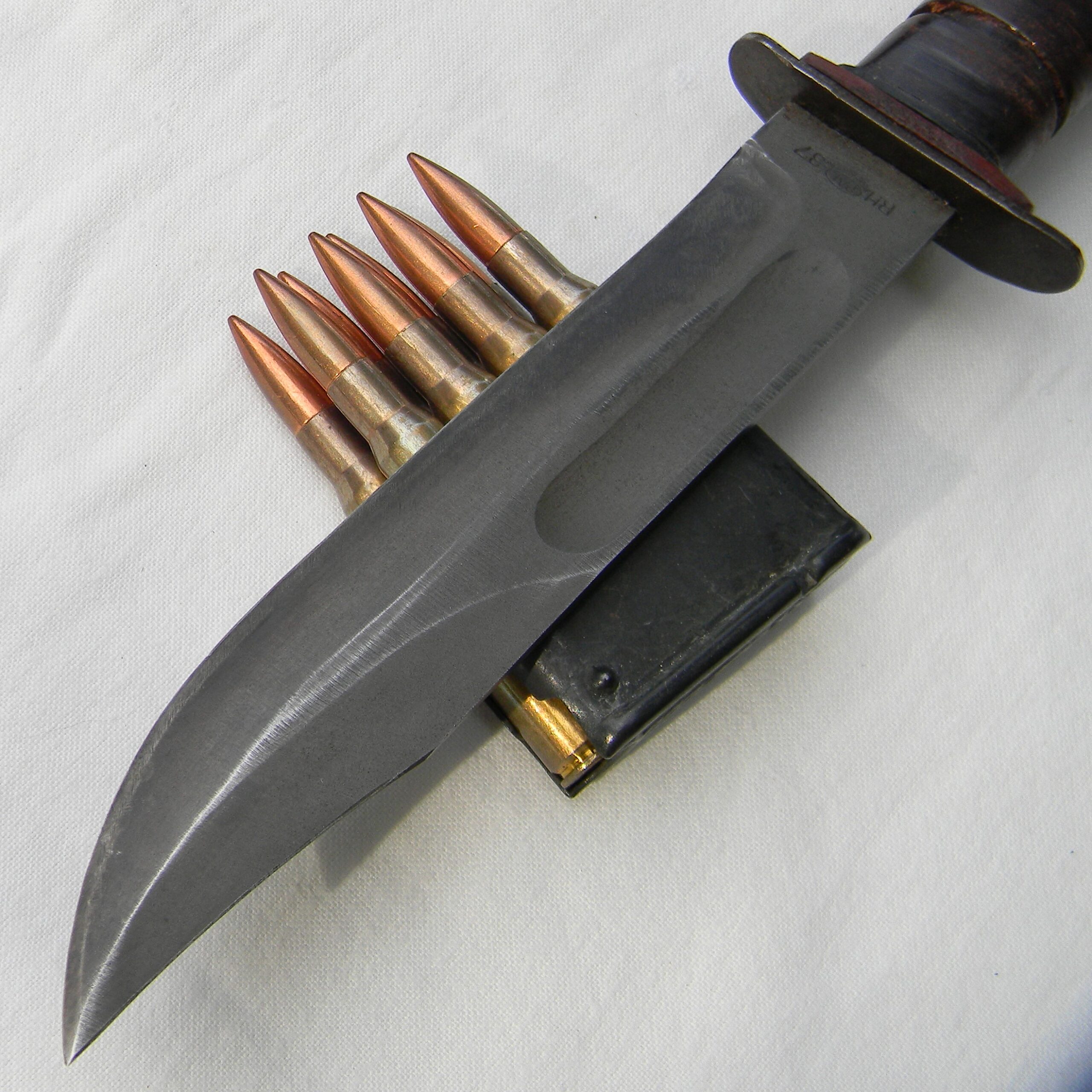 This attractive ” red spacer” type US Navy WW2 PAL MK2 fighting knife has not been cleaned or tampered with in any way, it is in 100% original “as is” condition. These are the actual photos; Garand clips are not included with the lot 😉 I have a few more American WW2 era combat knives and bayonets, as well as several scarce WW1 and WW2 fighting daggers and trench knives from other countries available for sale – please take a look in our Militaria section.