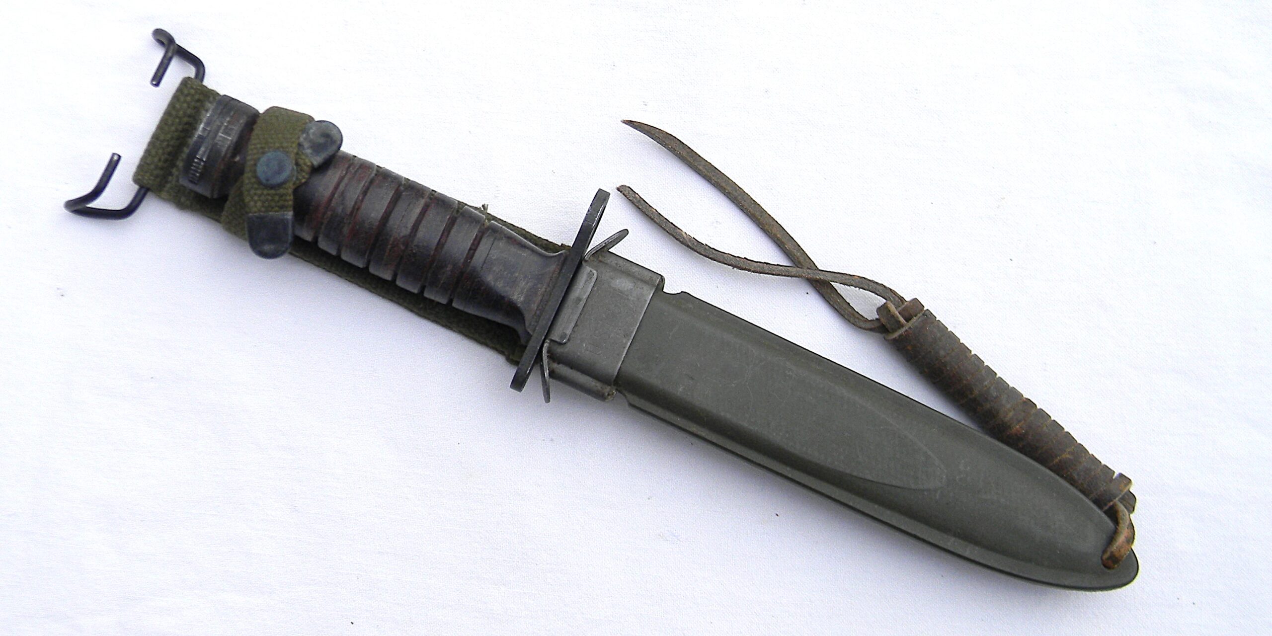 WW2 Utica M4 bayonet – scarce early “6 groves handle” type, original M8A1 Victory Plastics Beckwith Mfg Co composition scabbard. An attractive M4 specimen in rare UNUSED condition. FREE EXPEDITED SHIPPING WITHIN THE U.S. FOR THIS ITEM!